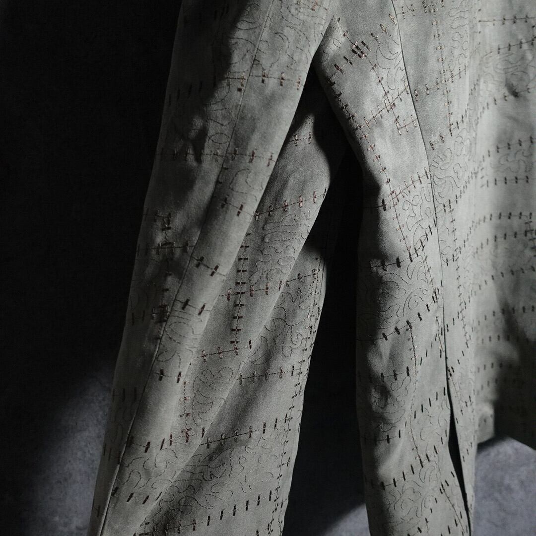 カーキをベースに抽象的なモチーフ刺繍を全面にあしらった凝り凝ったデザイン。