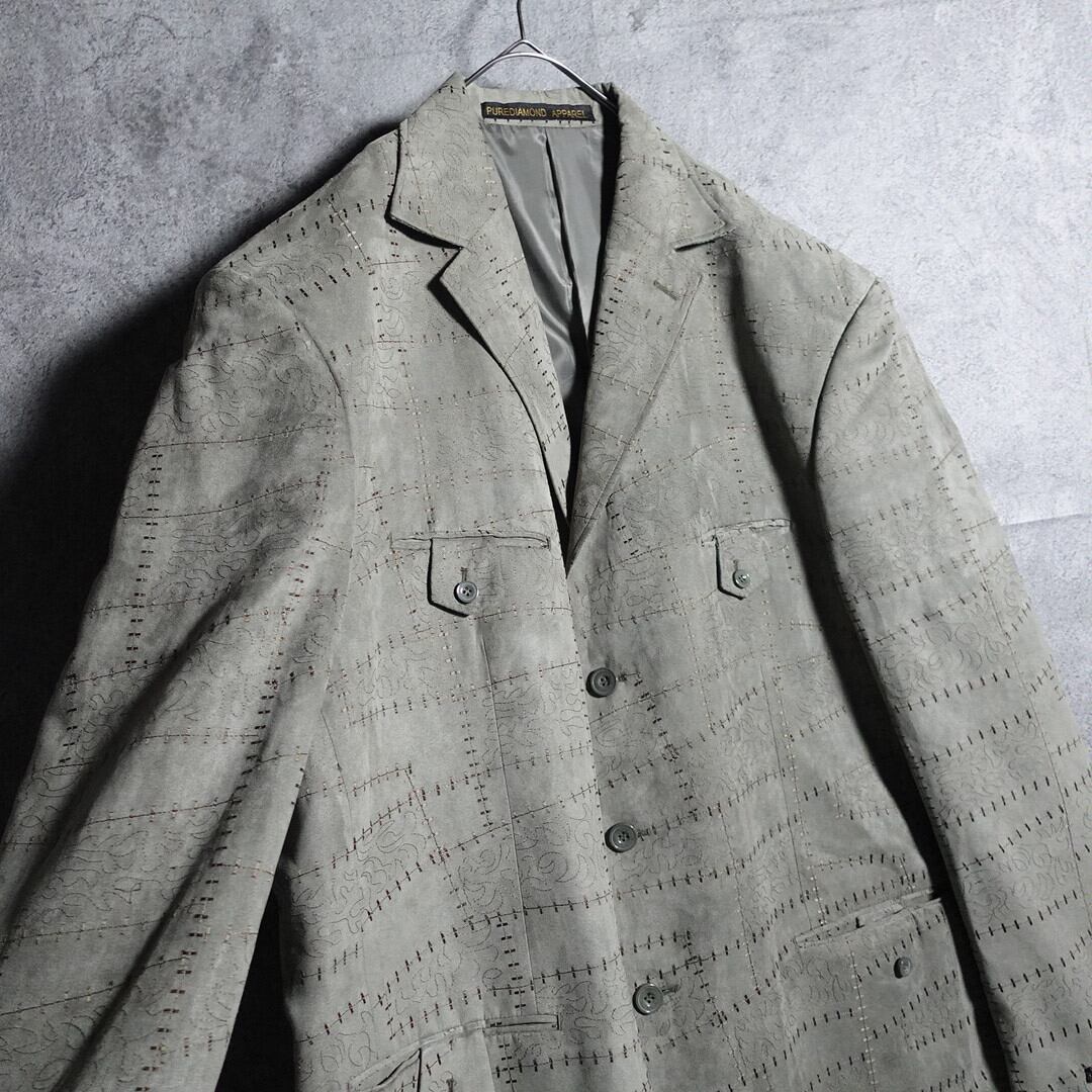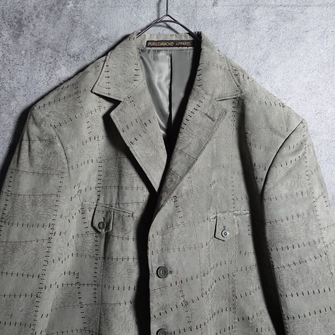 カーキのピーチスキン刺繍デザインテーラードジャケットが入荷です。