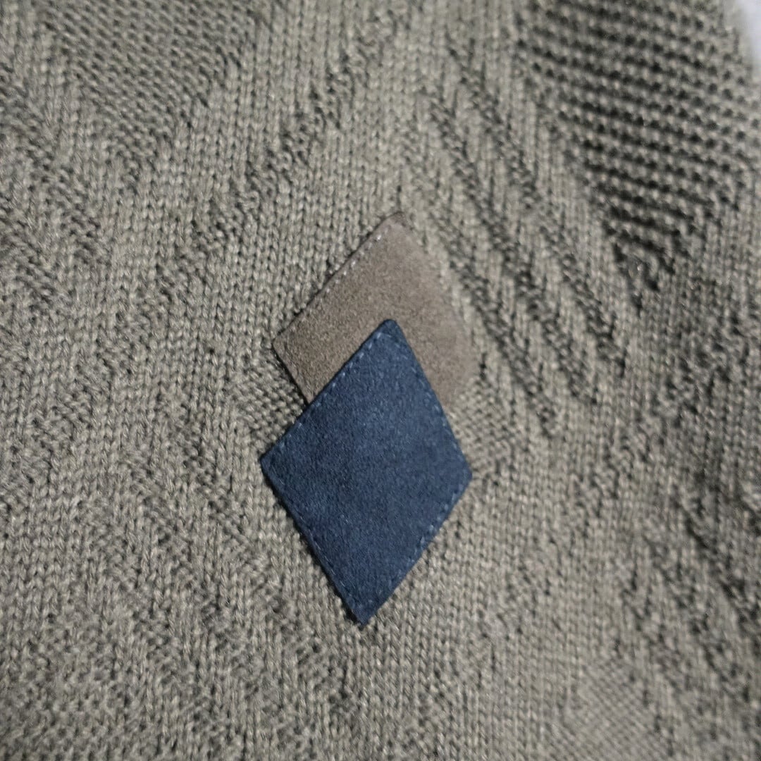 Khaki diamond motif suede design knit