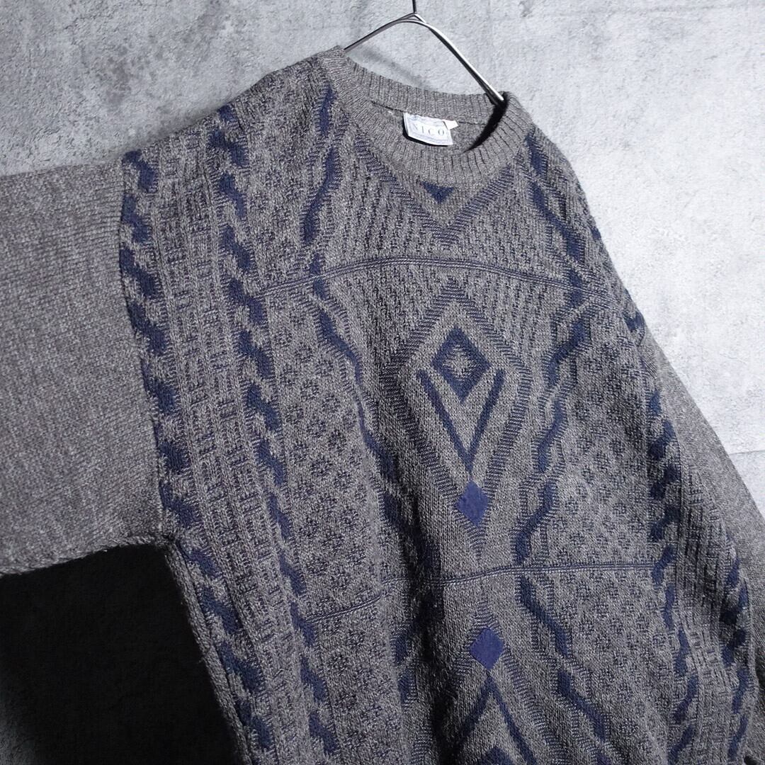 グレーの幾何学模様デザインニットが入荷です。