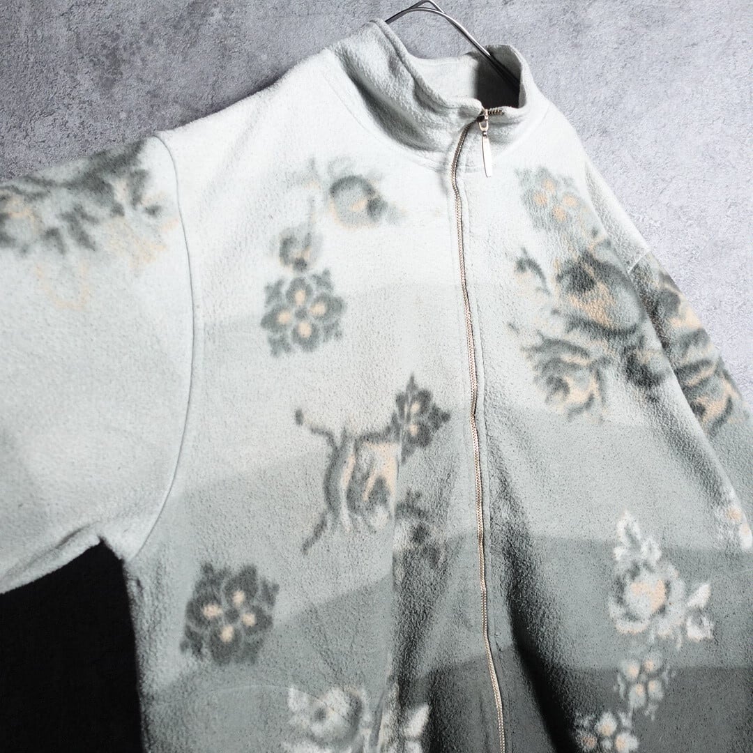 様々な花モチーフを全然にあしらったフリースでは珍しい洒落た華やかなデザイン。