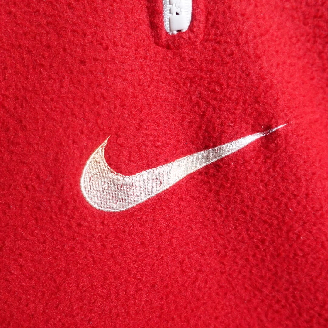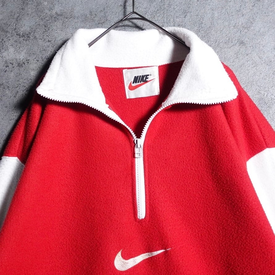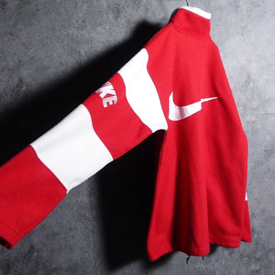 90s “NIKE” Red x White Logo Embroidery Design Half zip Fleece jacket