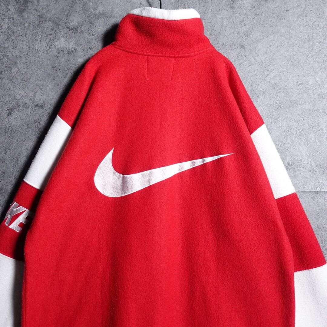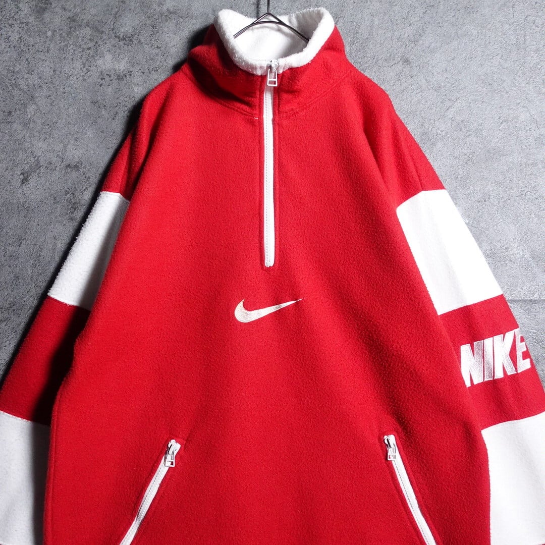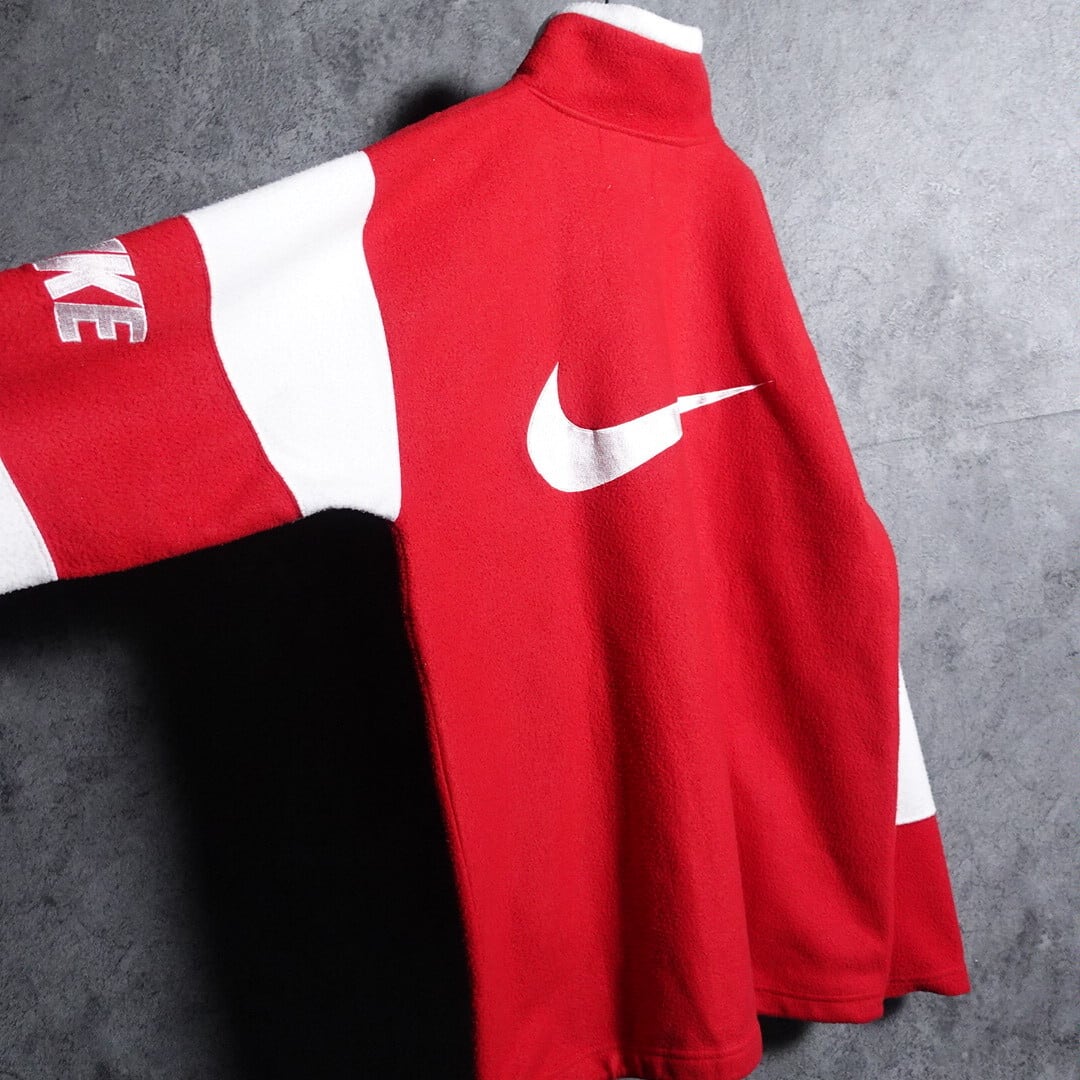 90s “NIKE” Red x White Logo Embroidery Design Half zip Fleece jacket