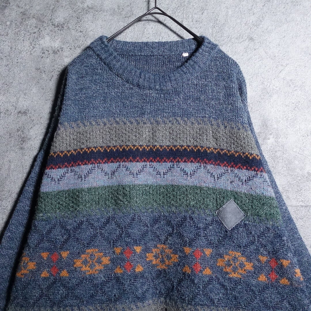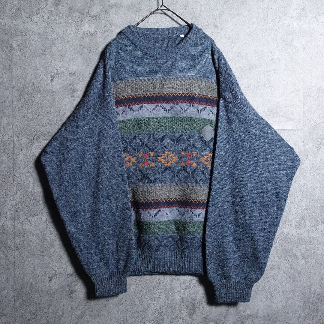 絶滅な色味のブルーをベースに幾何学模様をフロントのみにあしらった洒落たデザイン。