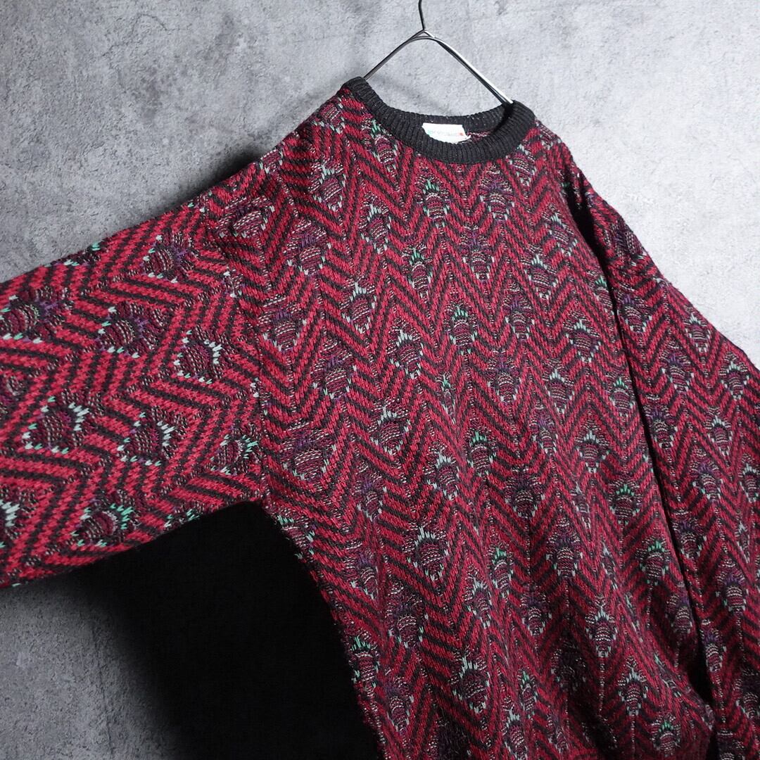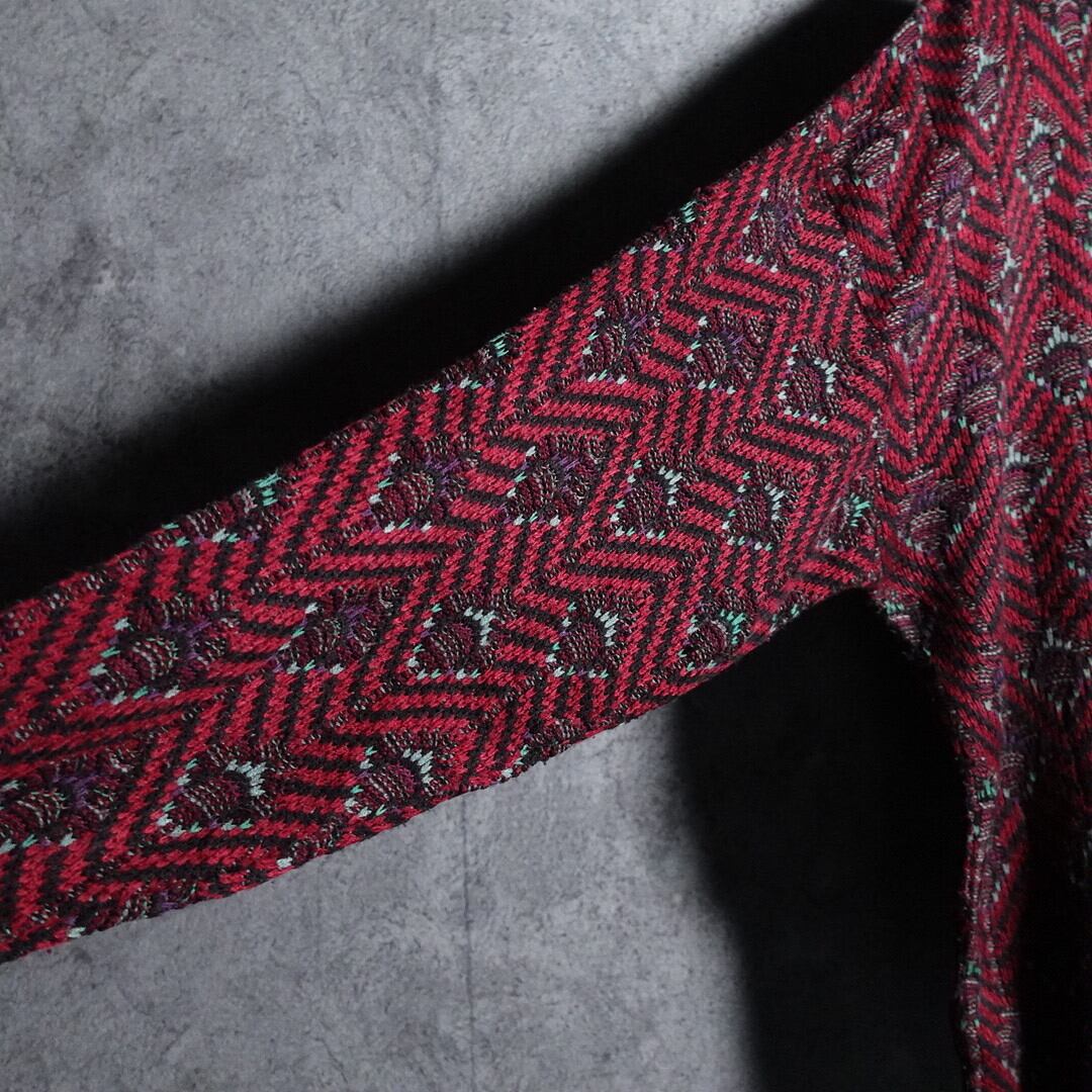 Wine red zigzag & abstract pattern design knit