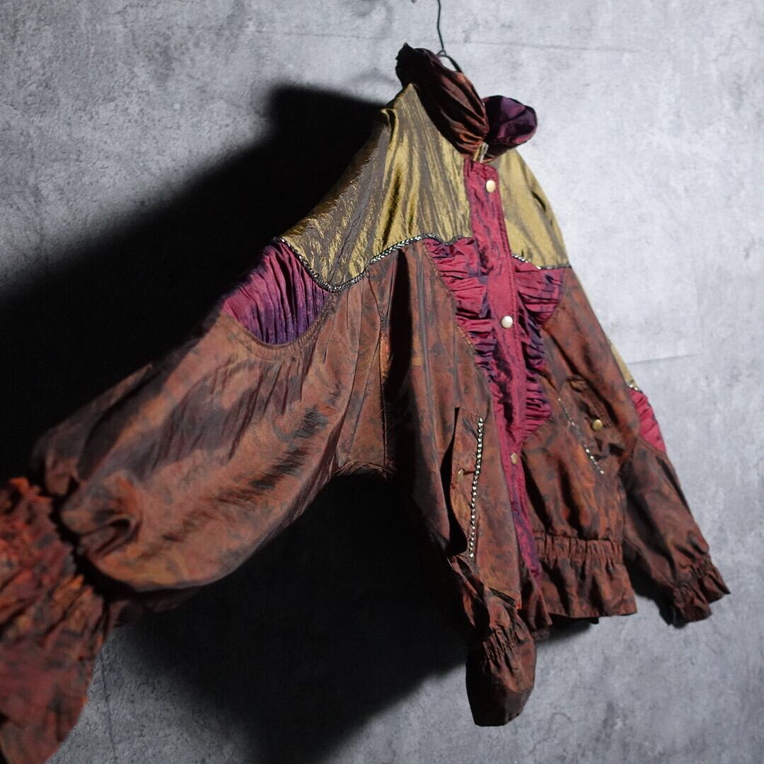 それぞれのカラーと花柄をあしらった生地を組み合わせた凝ったデザイン。