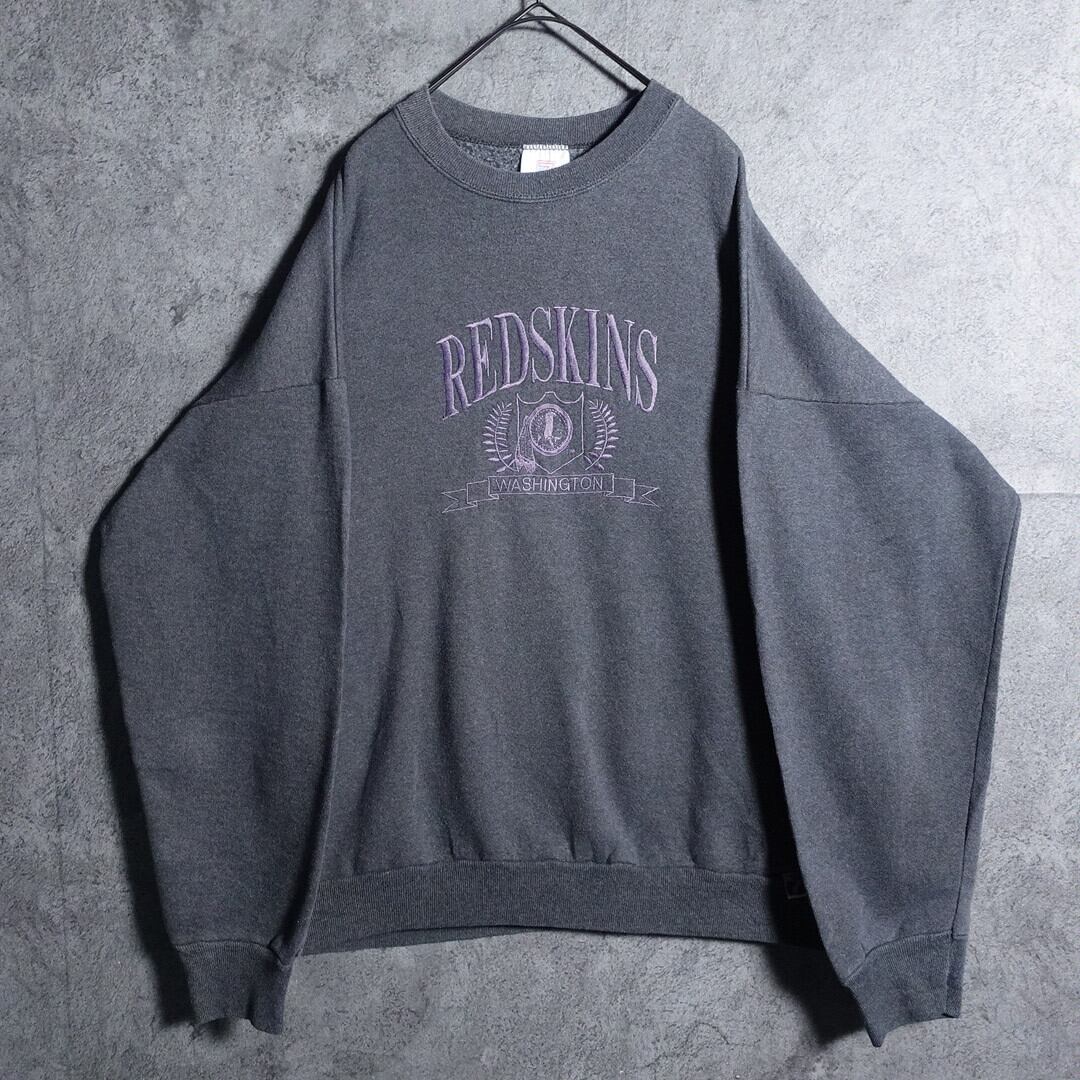 チャコールグレーをベースにアメリカのプロフットボールチームWASHINGTON REDSKINSのREDSKINSやエンブレムモチーフを絶妙な色味のパープル刺繍で施したデザイン。