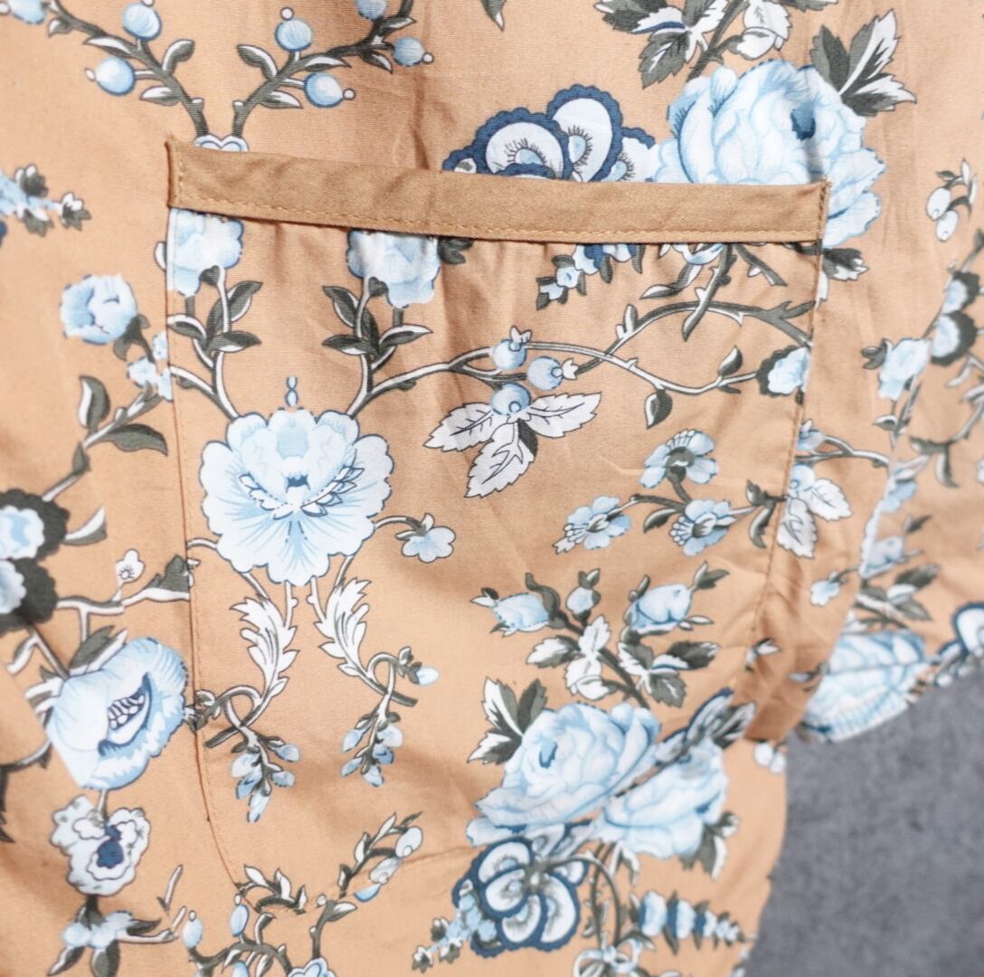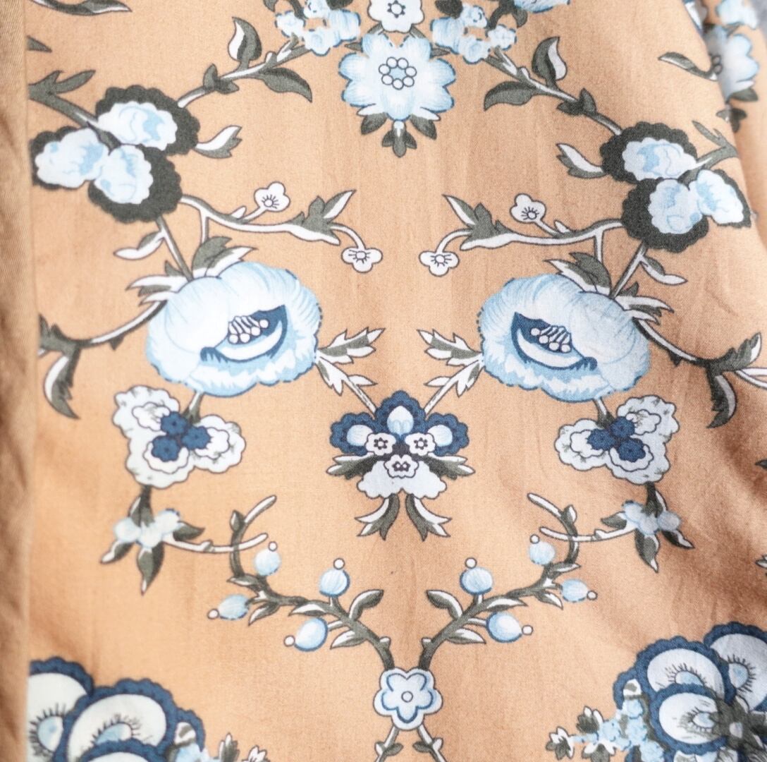 表面はベージュをベースにライトブルーの花柄をバラバラに全面にあしらったデザイン。