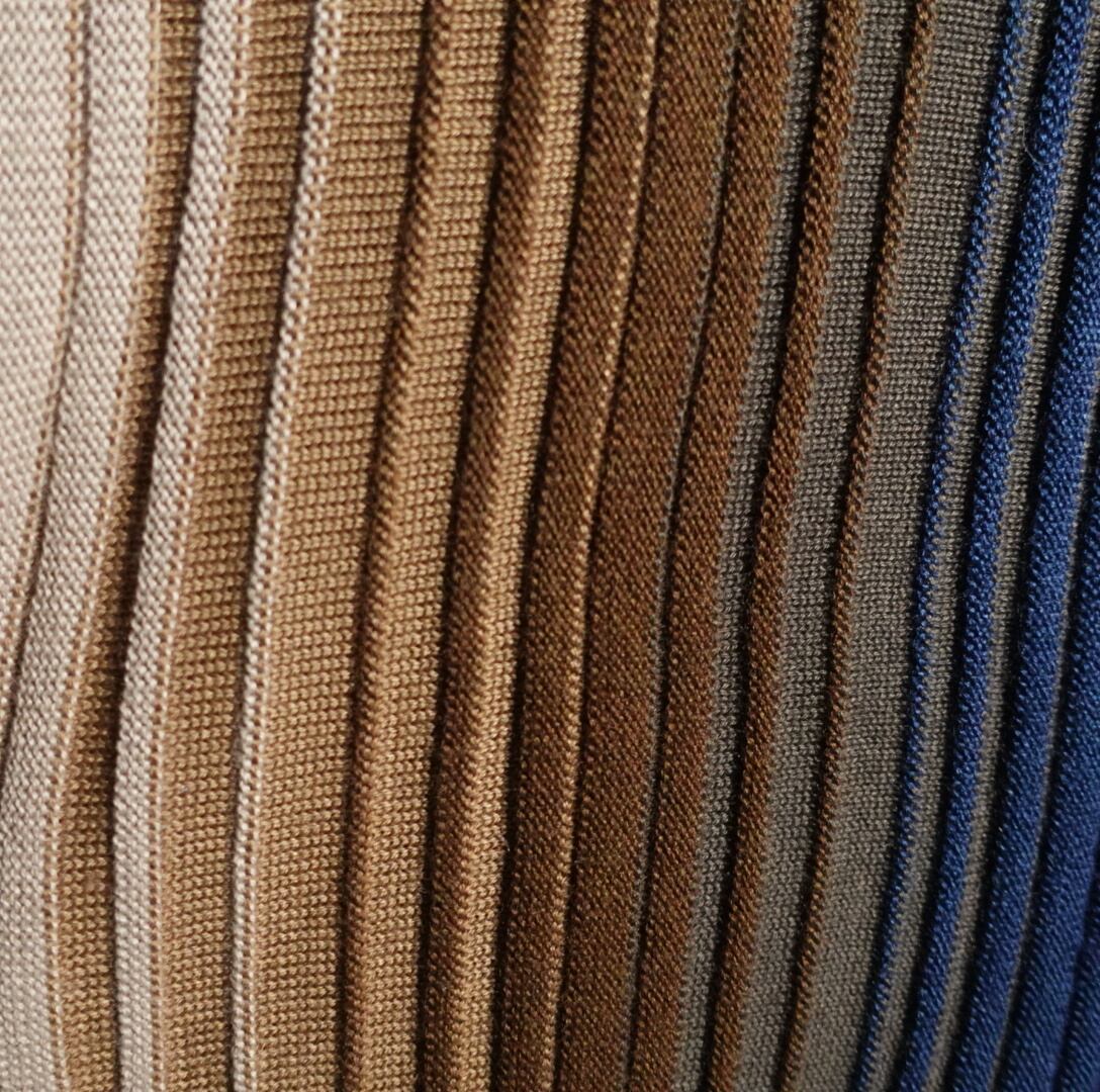 素材はウール50%アクリル50%で、肌触りの良い生地感で生地感も分厚くないのでアウターを調節することで今の季節から春先に向けてオススメな生地感です。