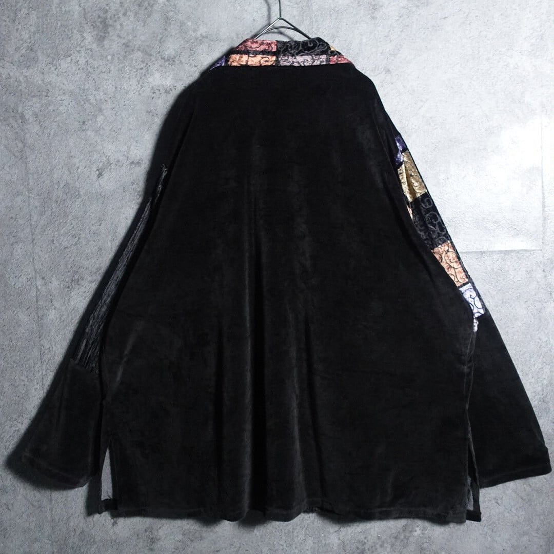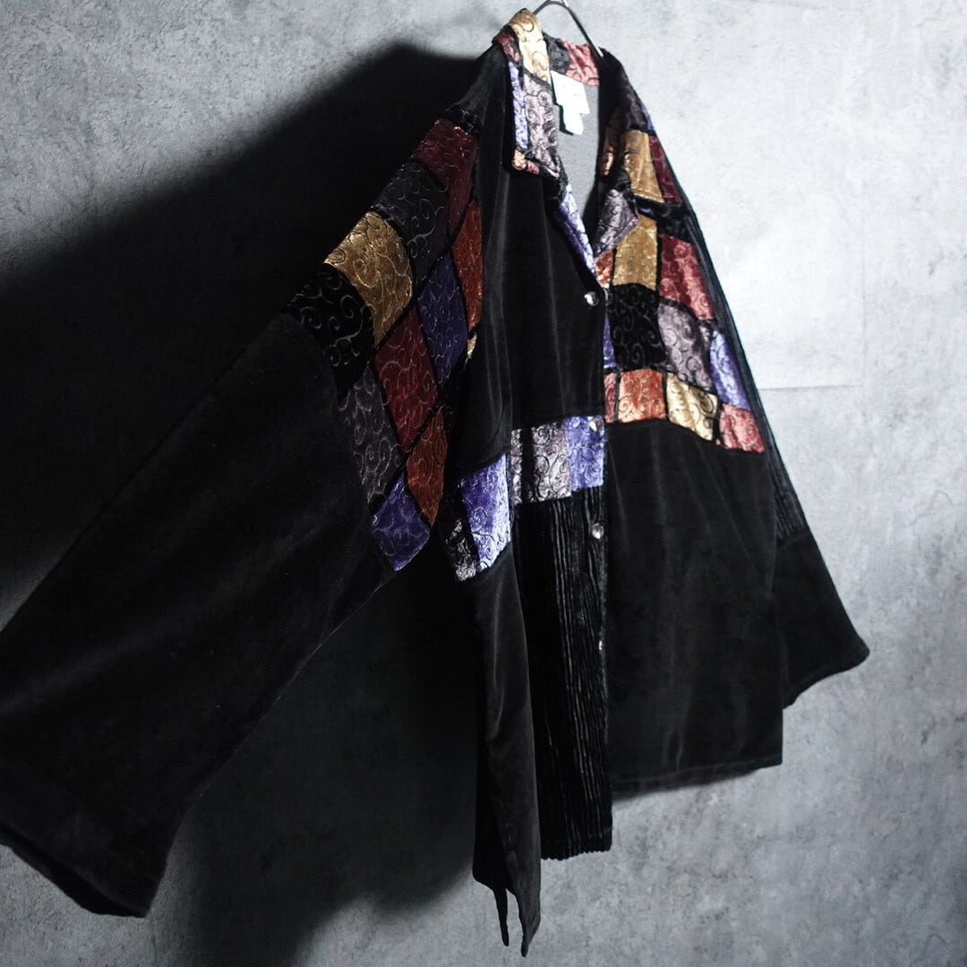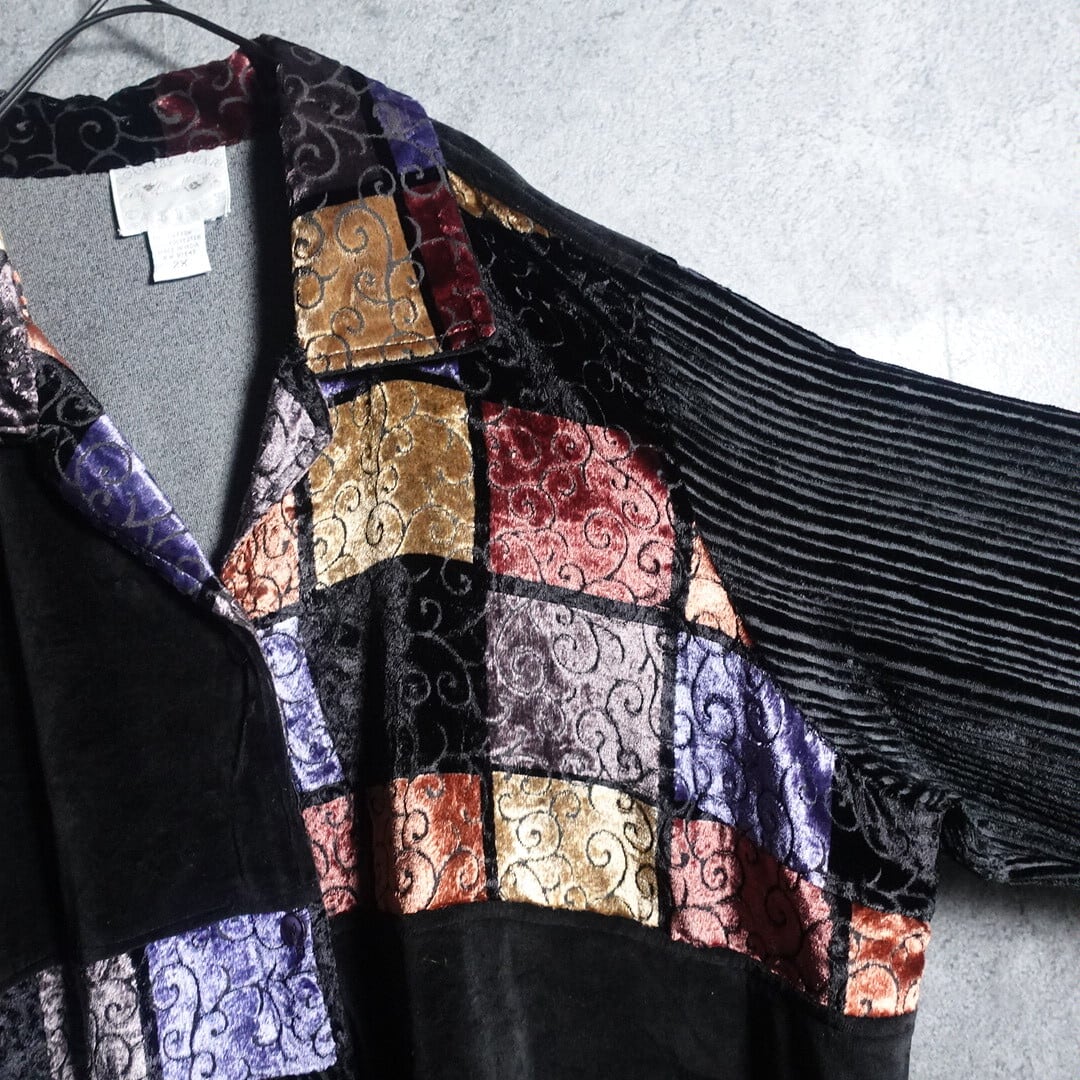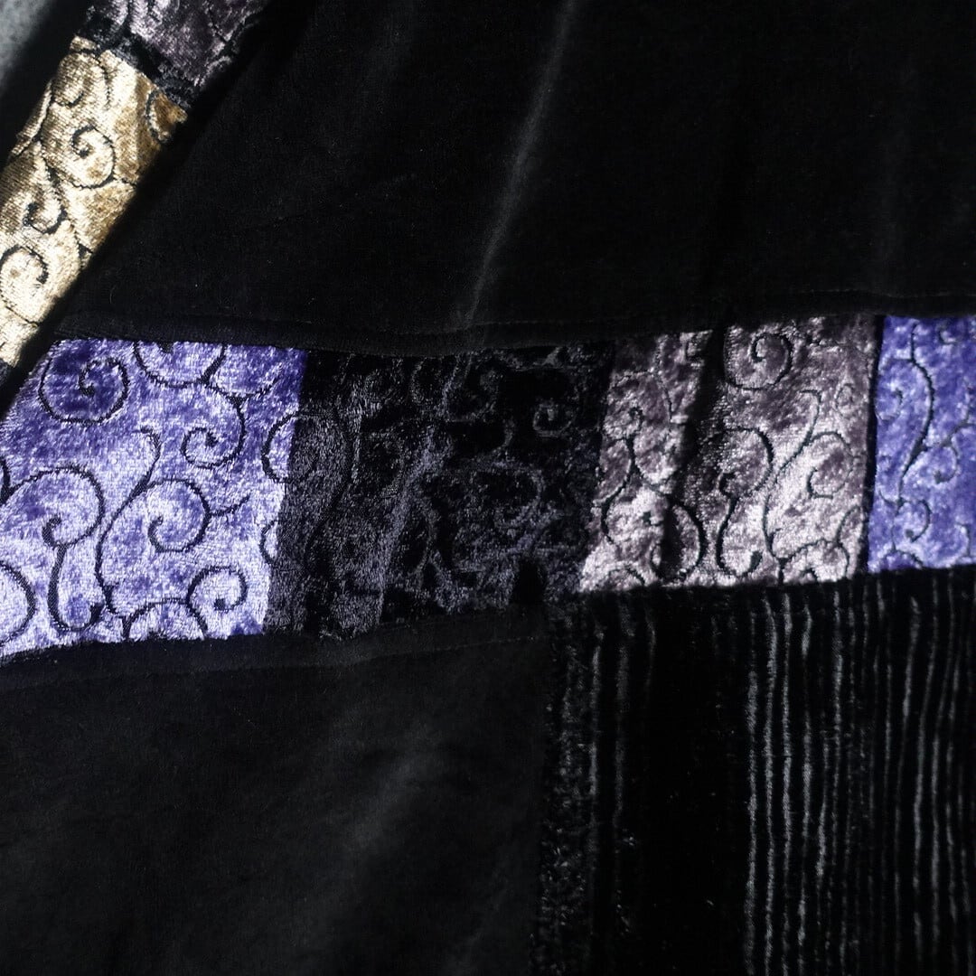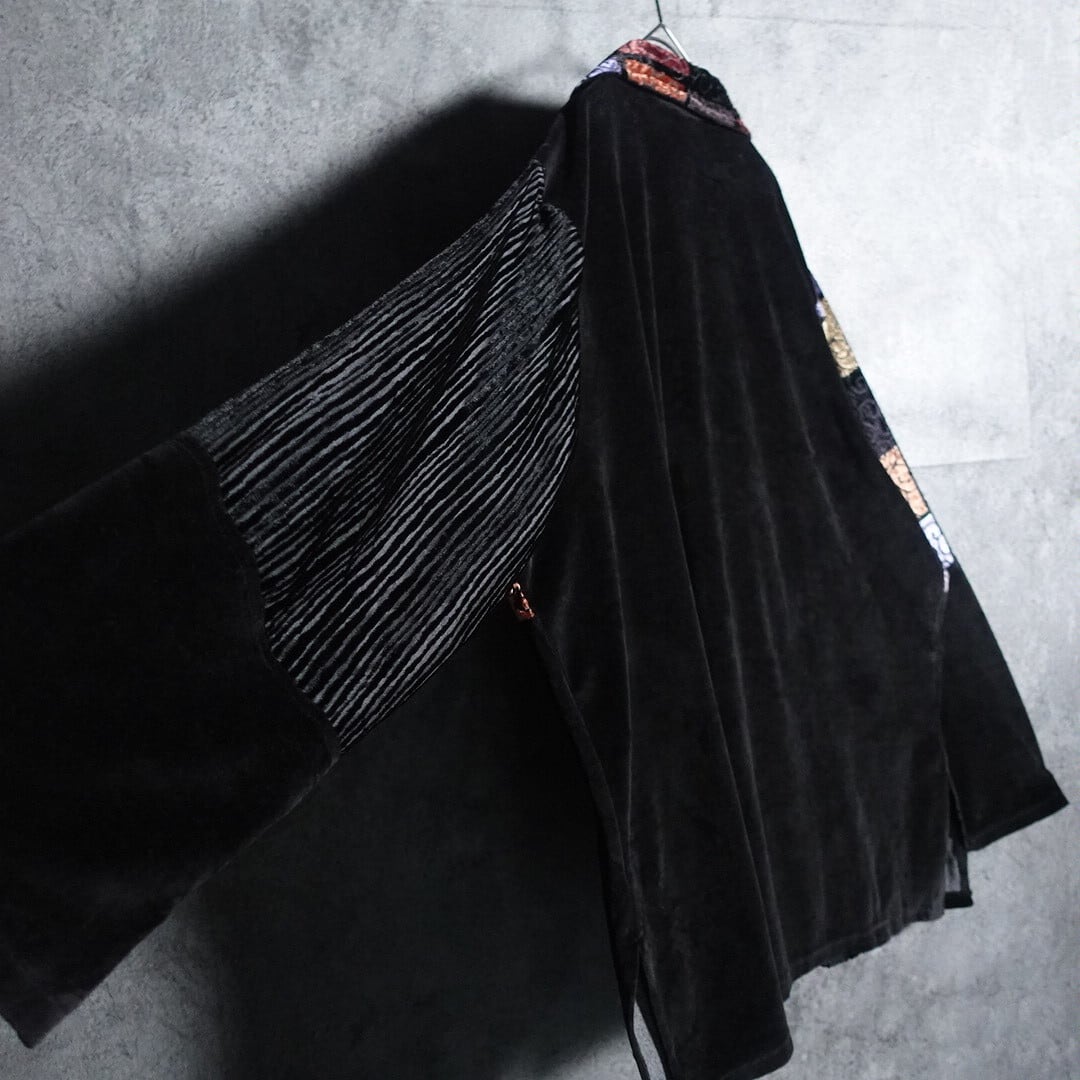ブラックをベースに様々な色の抽象柄、縦ウネのベロア生地を組み合わせ構築したスペシャルなデザイン。