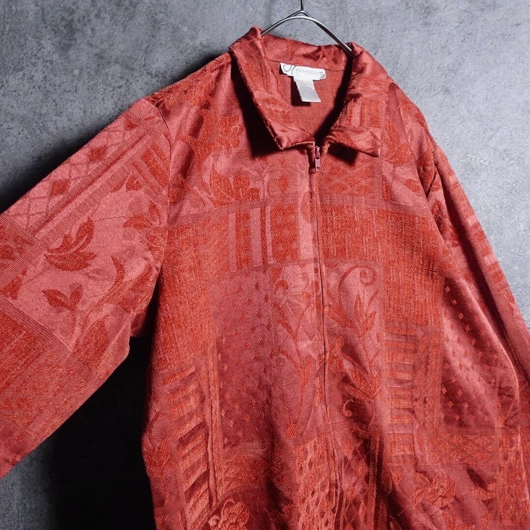 “dressbarn” Orange Geometric & Botanical Design Jacquard Zip Blouson