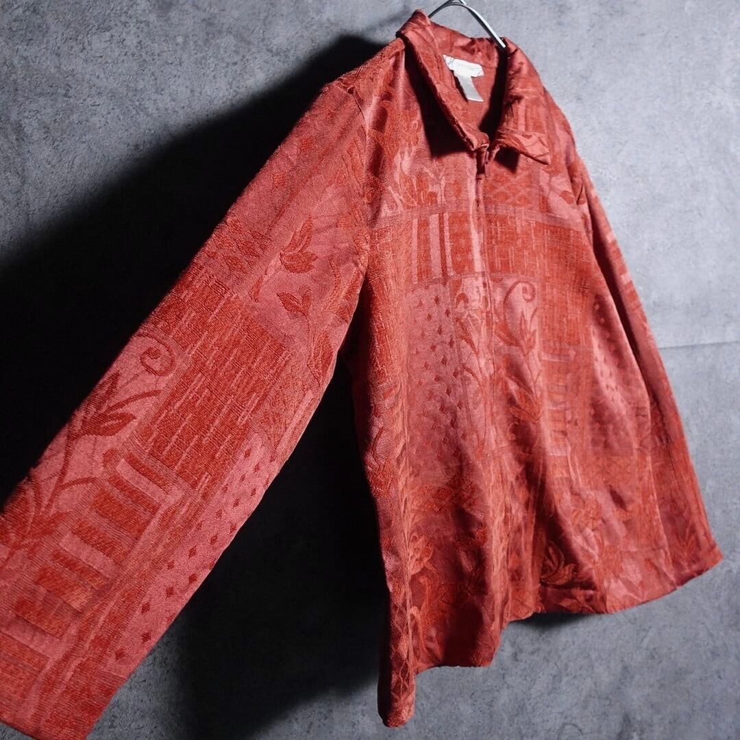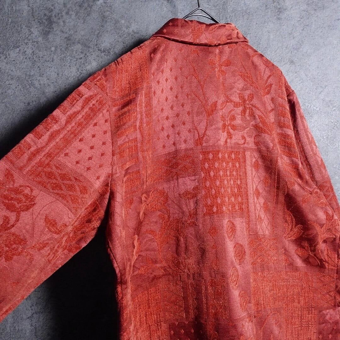 素材はレーヨン、ポリエステル、コットンのジャガード生地で特有の凹凸感と光沢感があり独特な雰囲気のある生地感となっています。