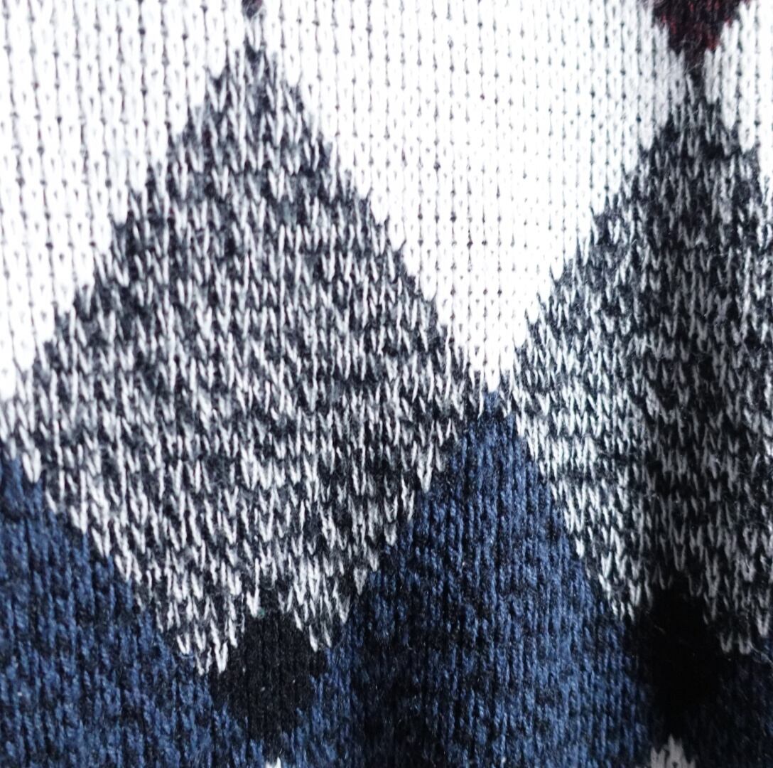 大判のアーガイル柄を全面にあしらった上品なデザイン。