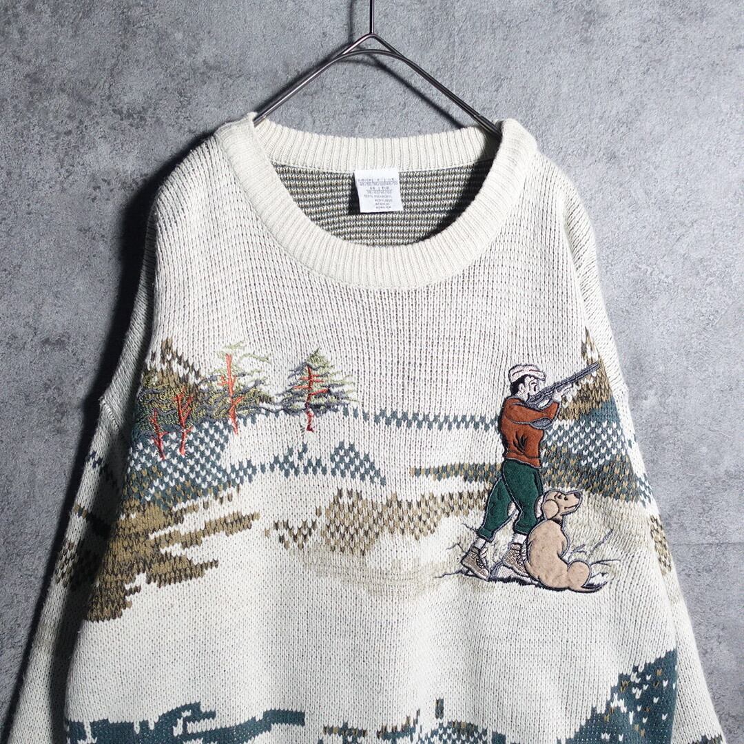 EURO Landscape hunter dog embroidery design knit