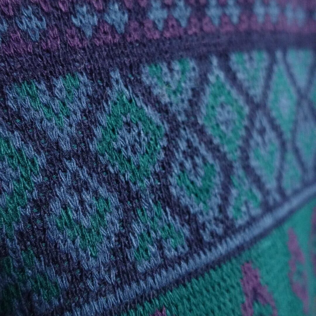 ネイビー、グリーン、パープル、ライトブルーの独特な色味のマルチカラーリング。