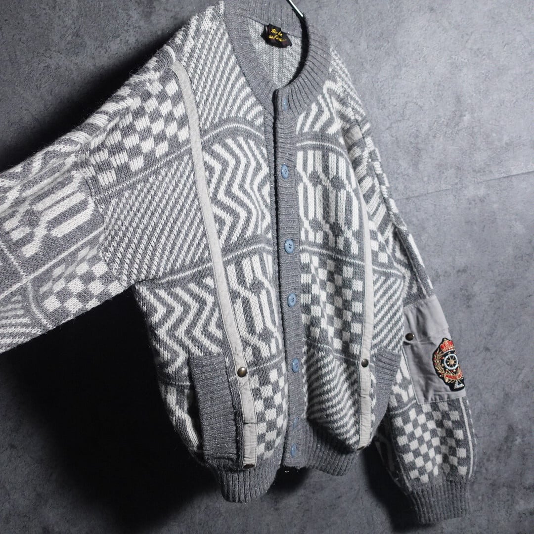 ユーロのエンブレム刺繍&幾何学模様のデザインニットブルゾンが入荷です。