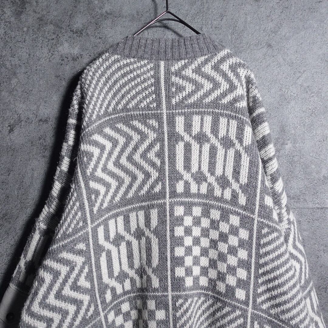 EURO Monotone embroidery geometric pattern knit blouson