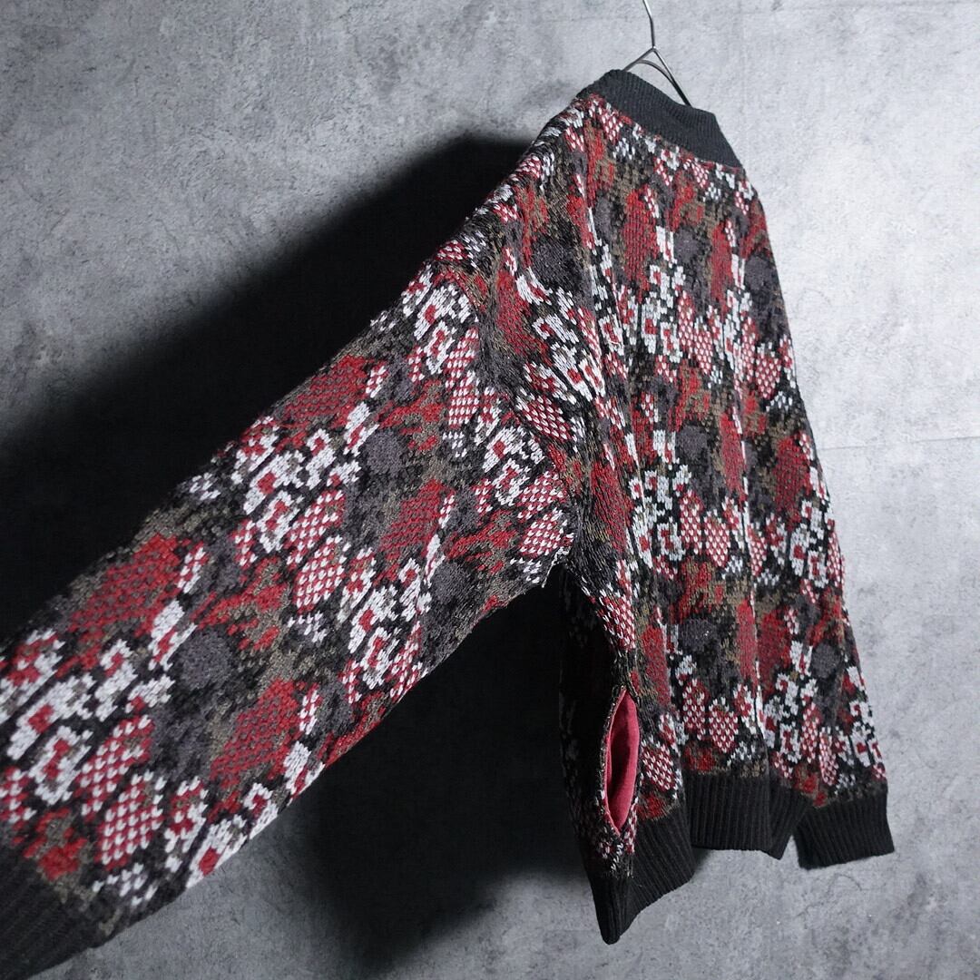 EURO Multicolor Abstract Pattern Design Knit Blouson