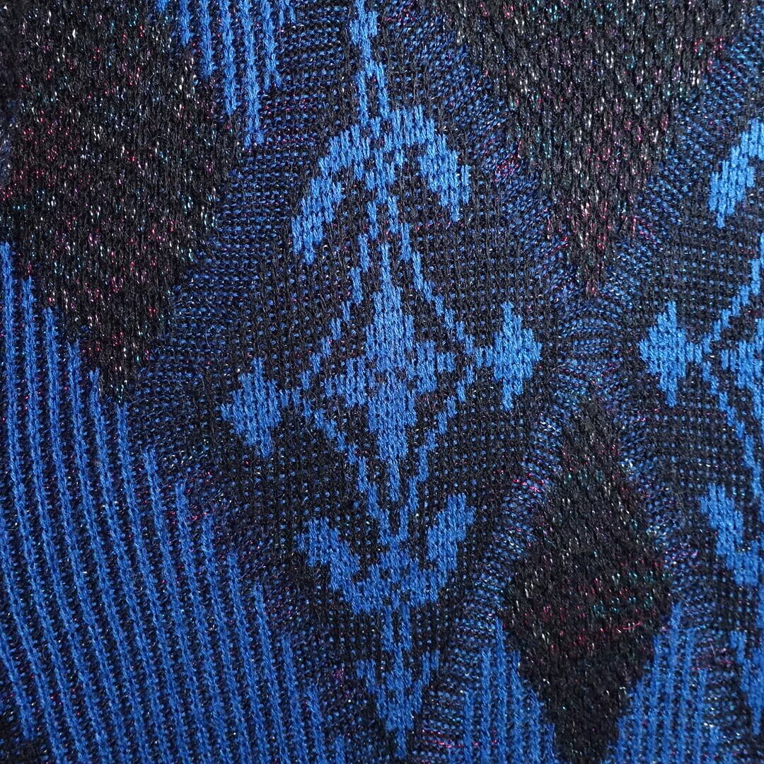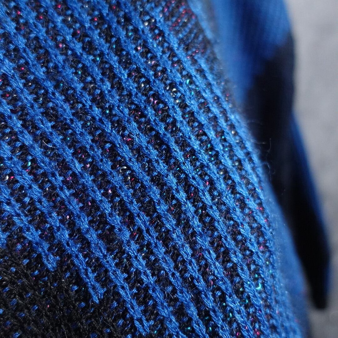ライトブルー、ピンク、グレーのナイロン生地の糸を全面に施しており、ラメのようになっており珍しい洒落た仕上がりとなっています。