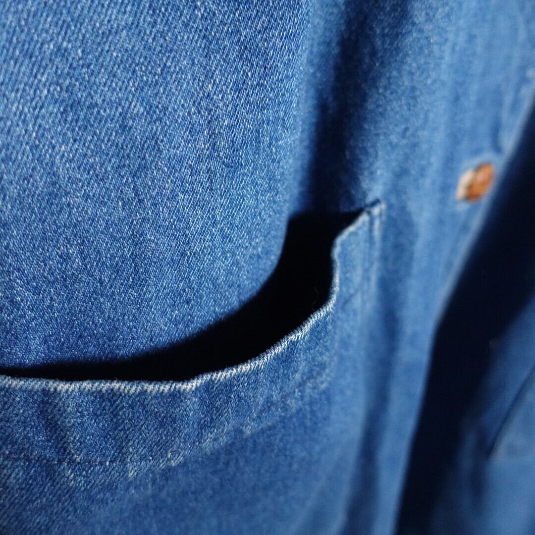 デニムコートでは珍しい昨今人気のチンストラップ付きでスタンドカラーとしても着ていただけます。