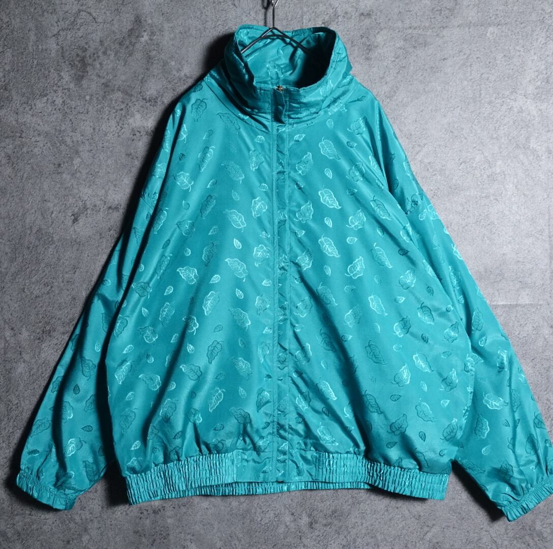 エメラルドグリーンのリーフモチーフナイロンジャケットが入荷です。