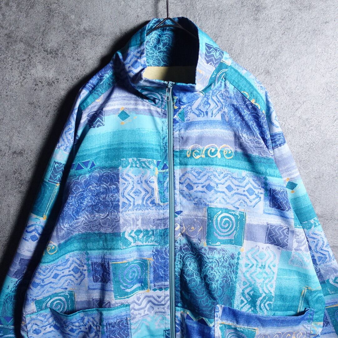 幾何学模様のデザインナイロンジャケットが入荷です。