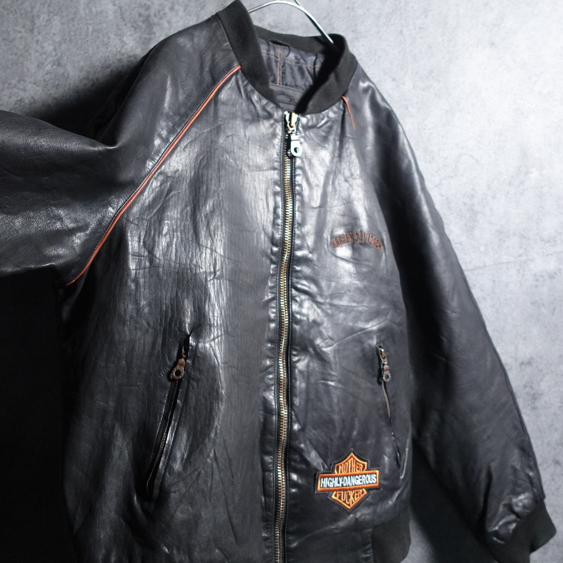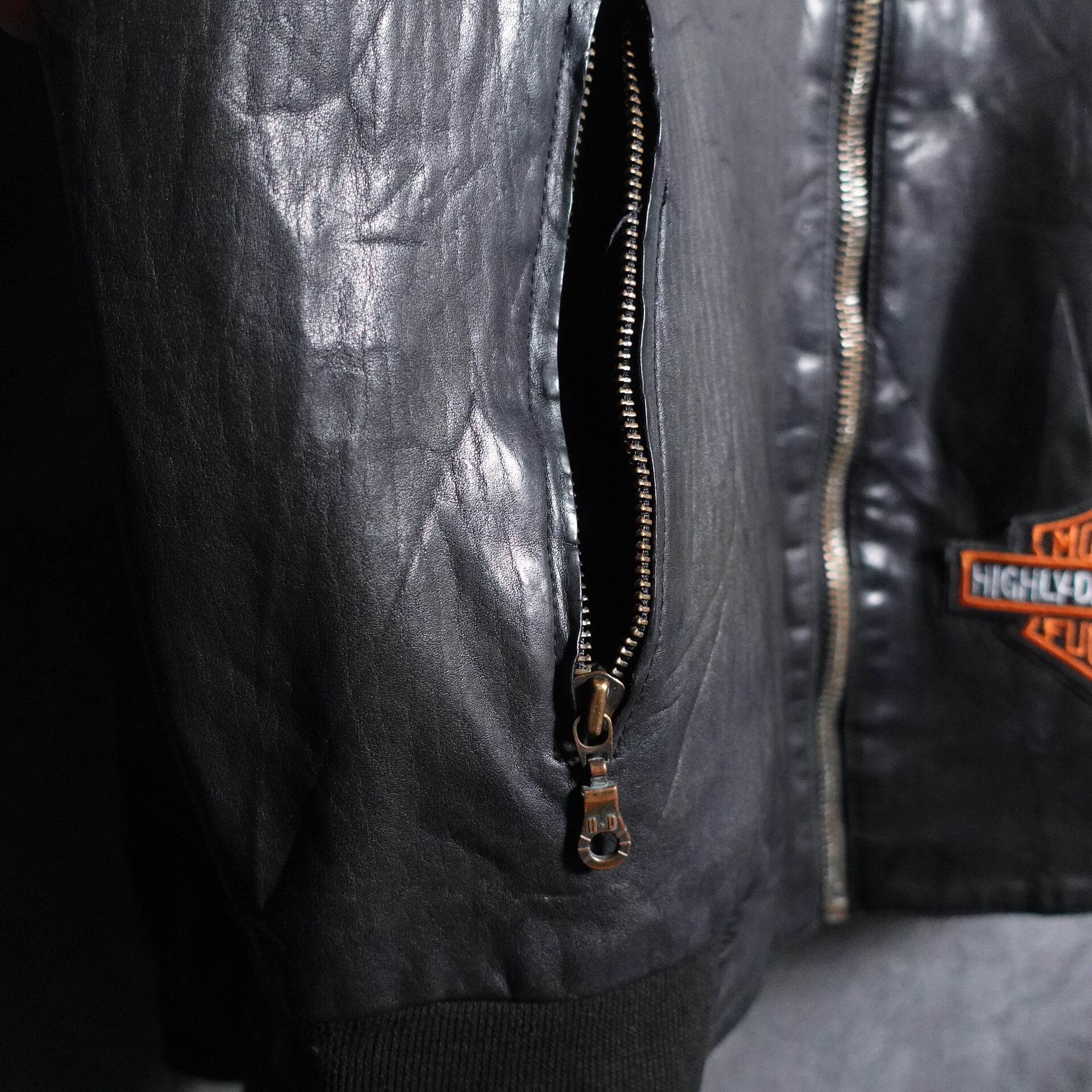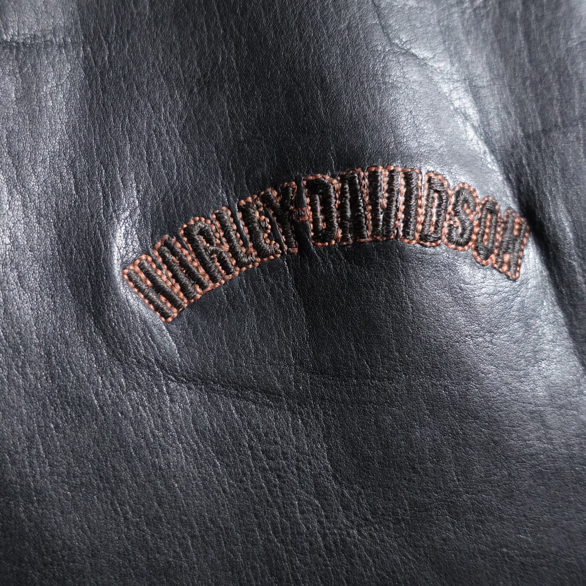 “HARLEY DAVIDSON” Black Embroidered & Patch Design Leather Blouson