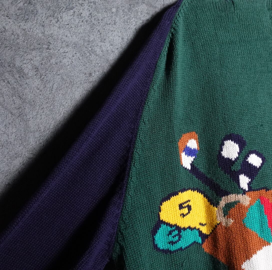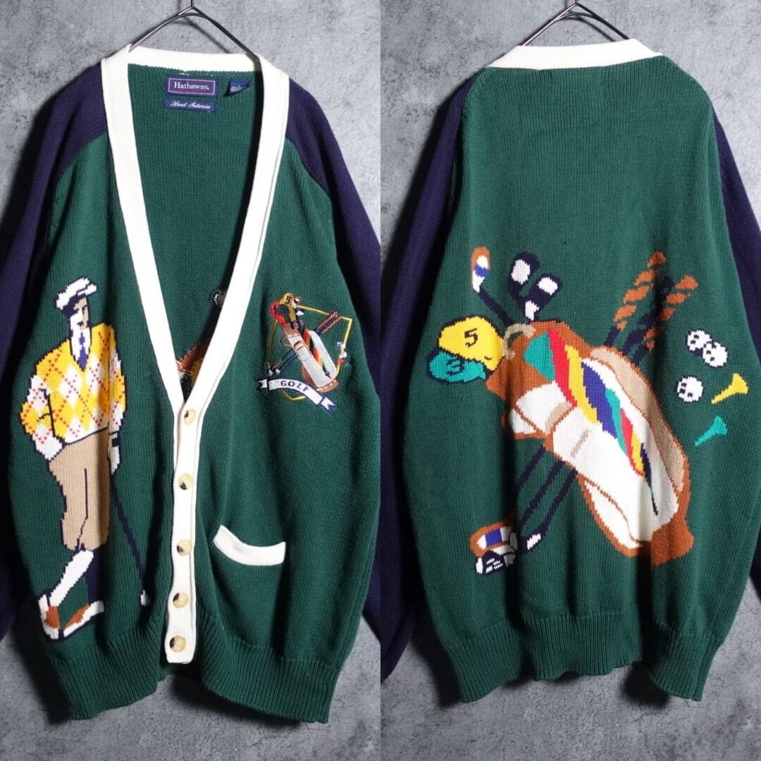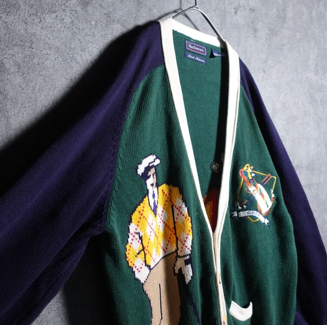 グリーン&ネイビーのゴルフデザインコットンカーディガンが入荷です。