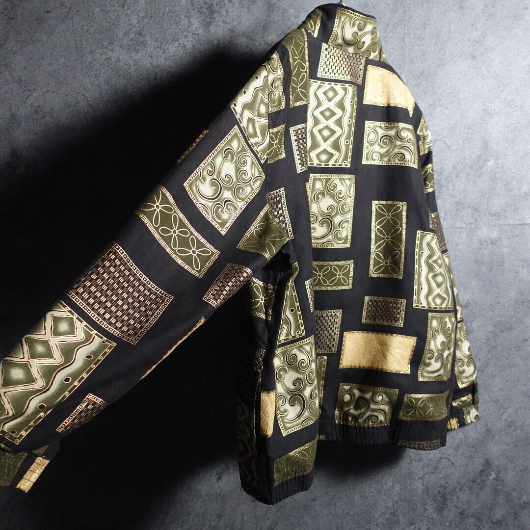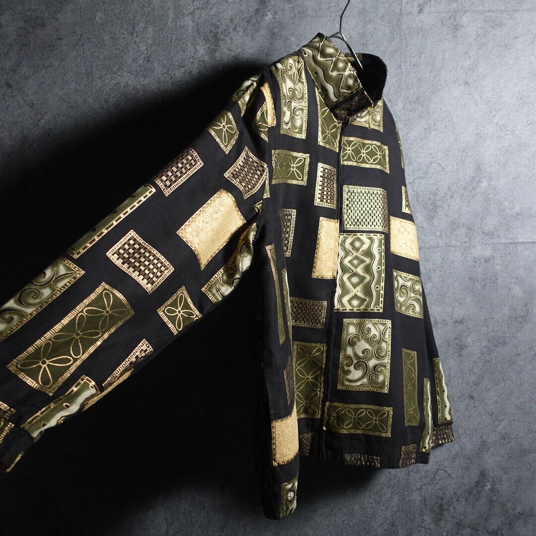Black Geometric Art Panel Design Peach Skin Zip Jacket