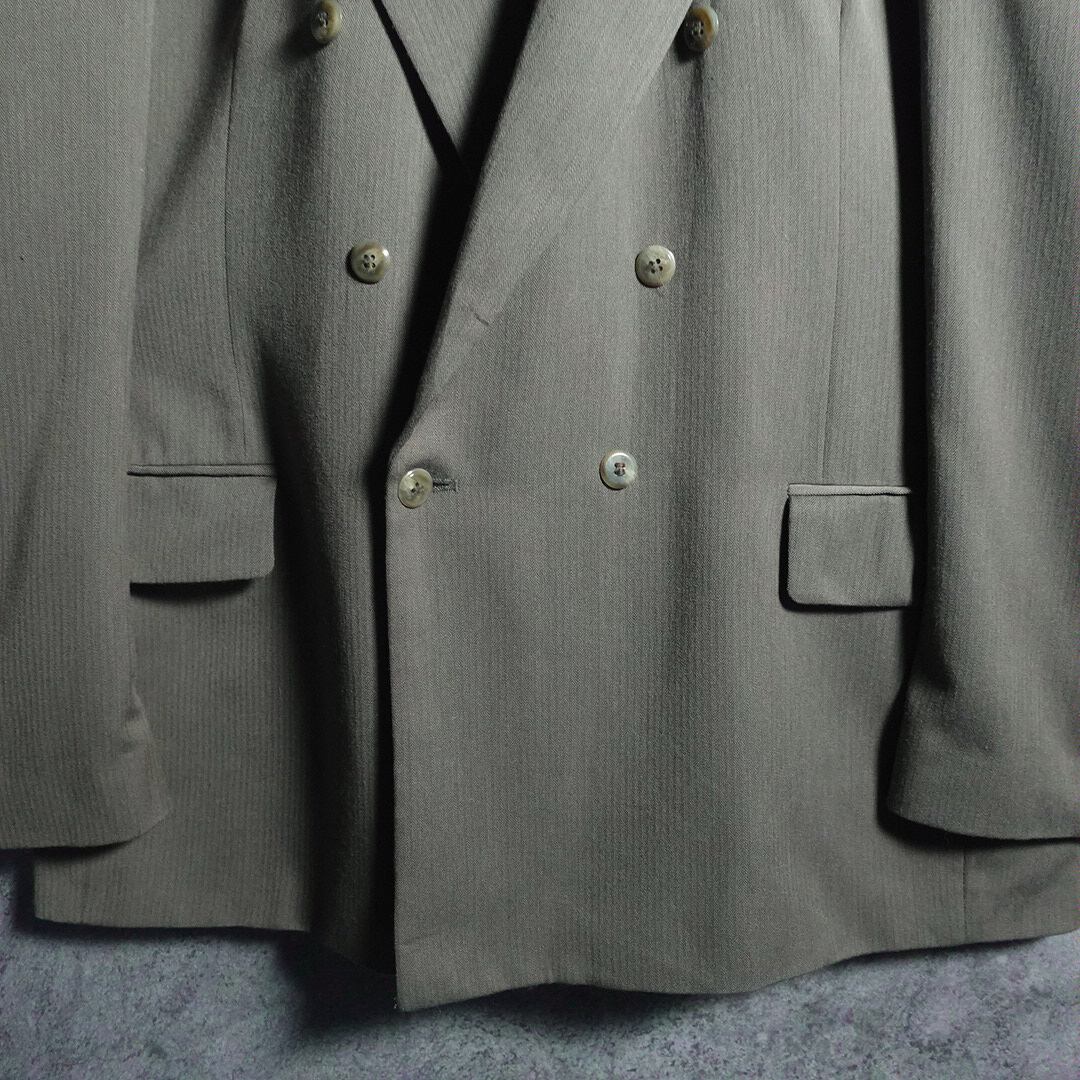近年人気のダブルブレストで存在感のあるラペルがモードな雰囲気を醸し出しています。