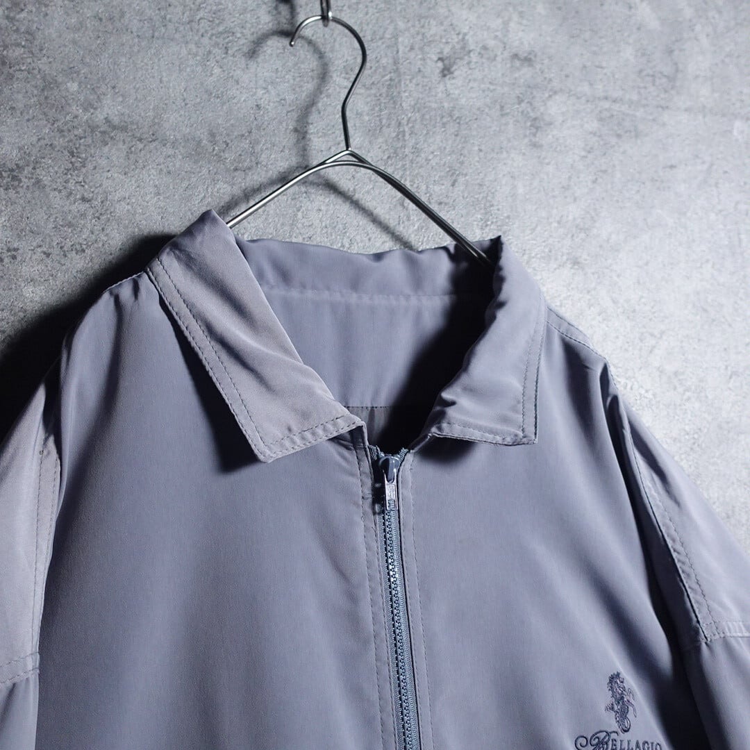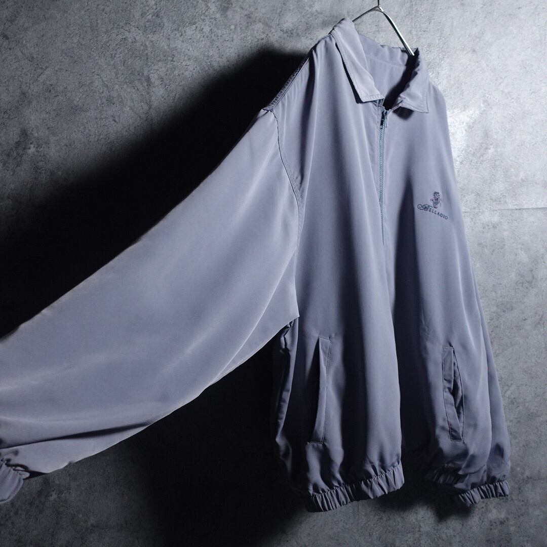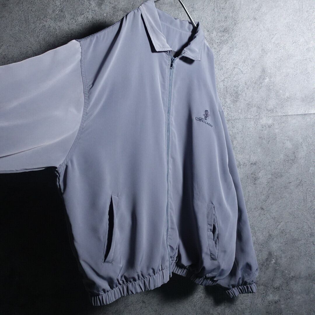 Blue Gray Embroidered Design Nylon Blouson