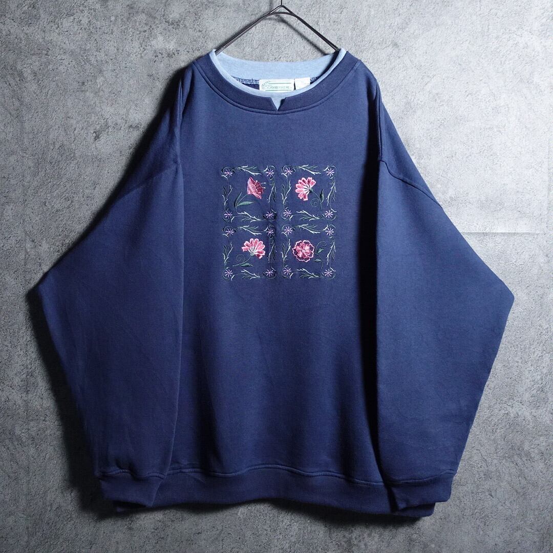 花モチーフ刺繍のデザインスウェットが入荷です。
