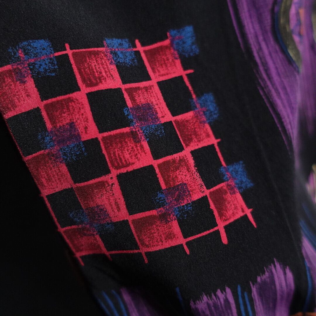 ブラックをベースに様々なモチーフを全面にあしらったアーティスティックなデザイン。