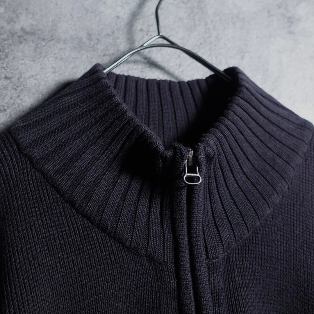 裾にオレンジのラインとタグを施したドライバーズニットでは珍しい洒落たデザイン。