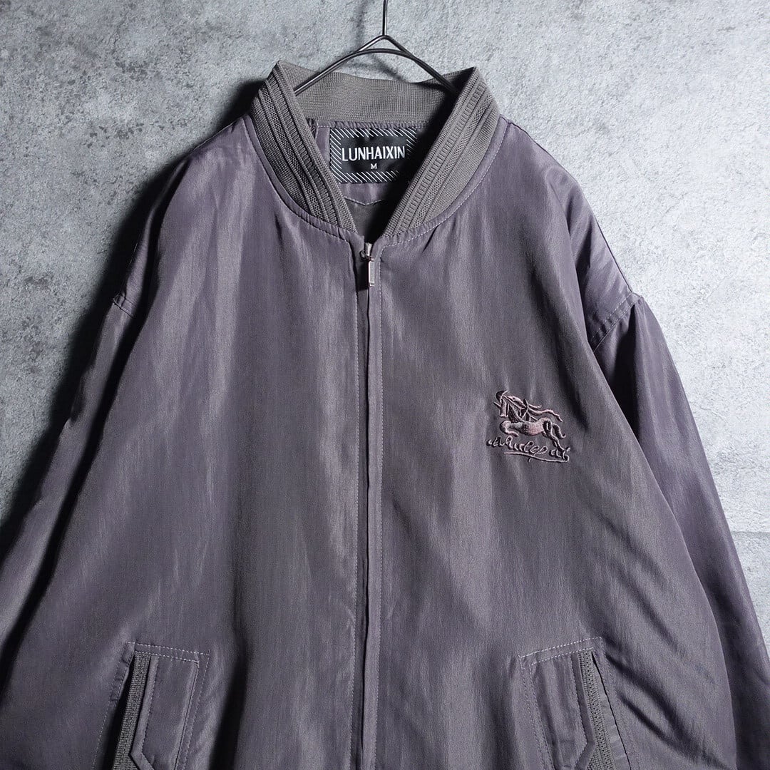 グレーの刺繍デザインナイロンブルゾンが入荷です。