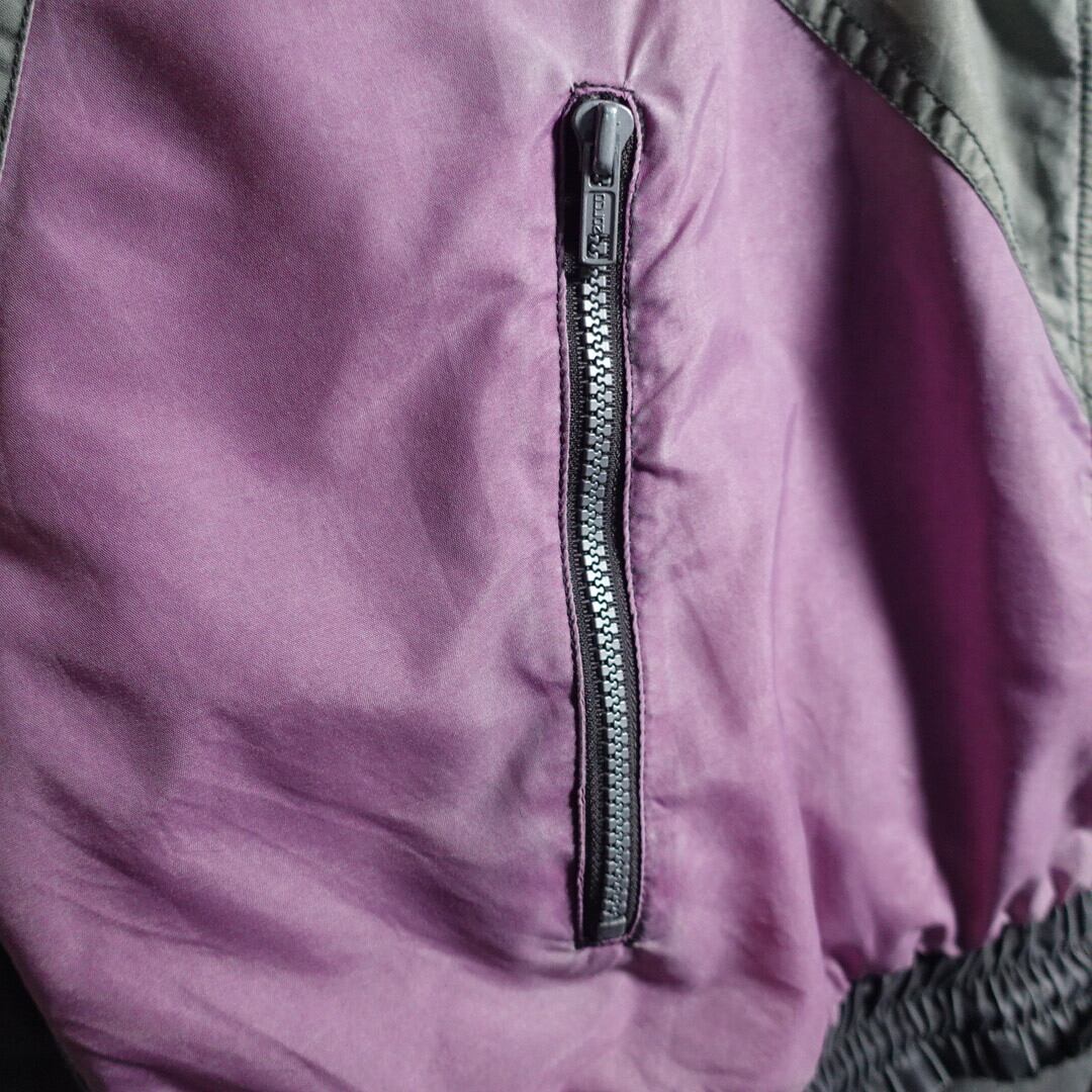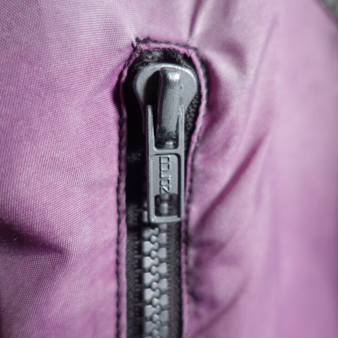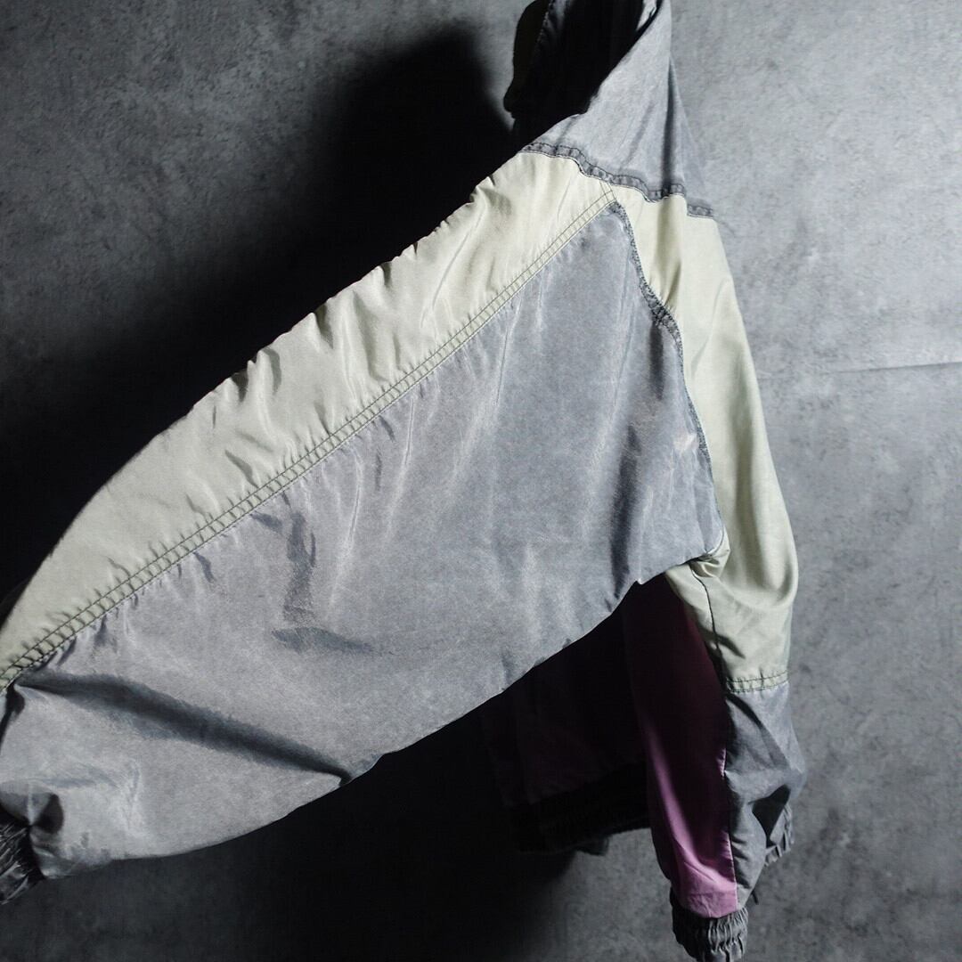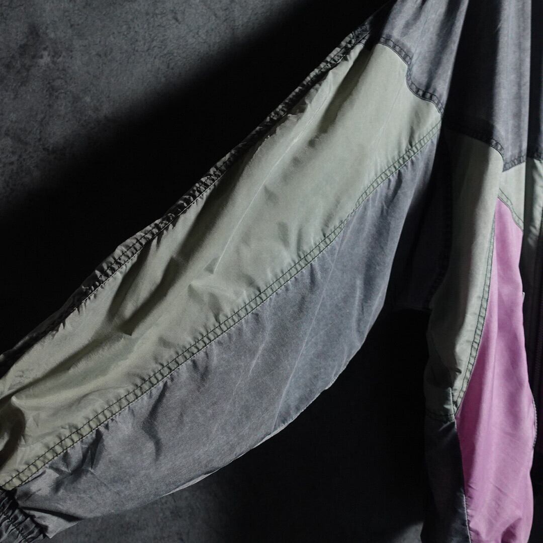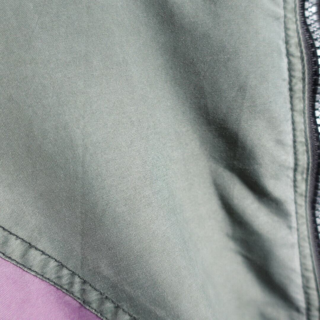 それぞれ生地の質感が少し異なるカラーナイロンを大きなパネル状に切り替えした洒落たデザイン。