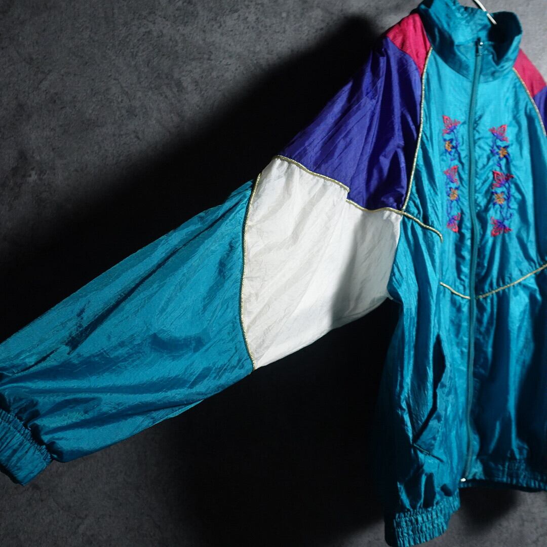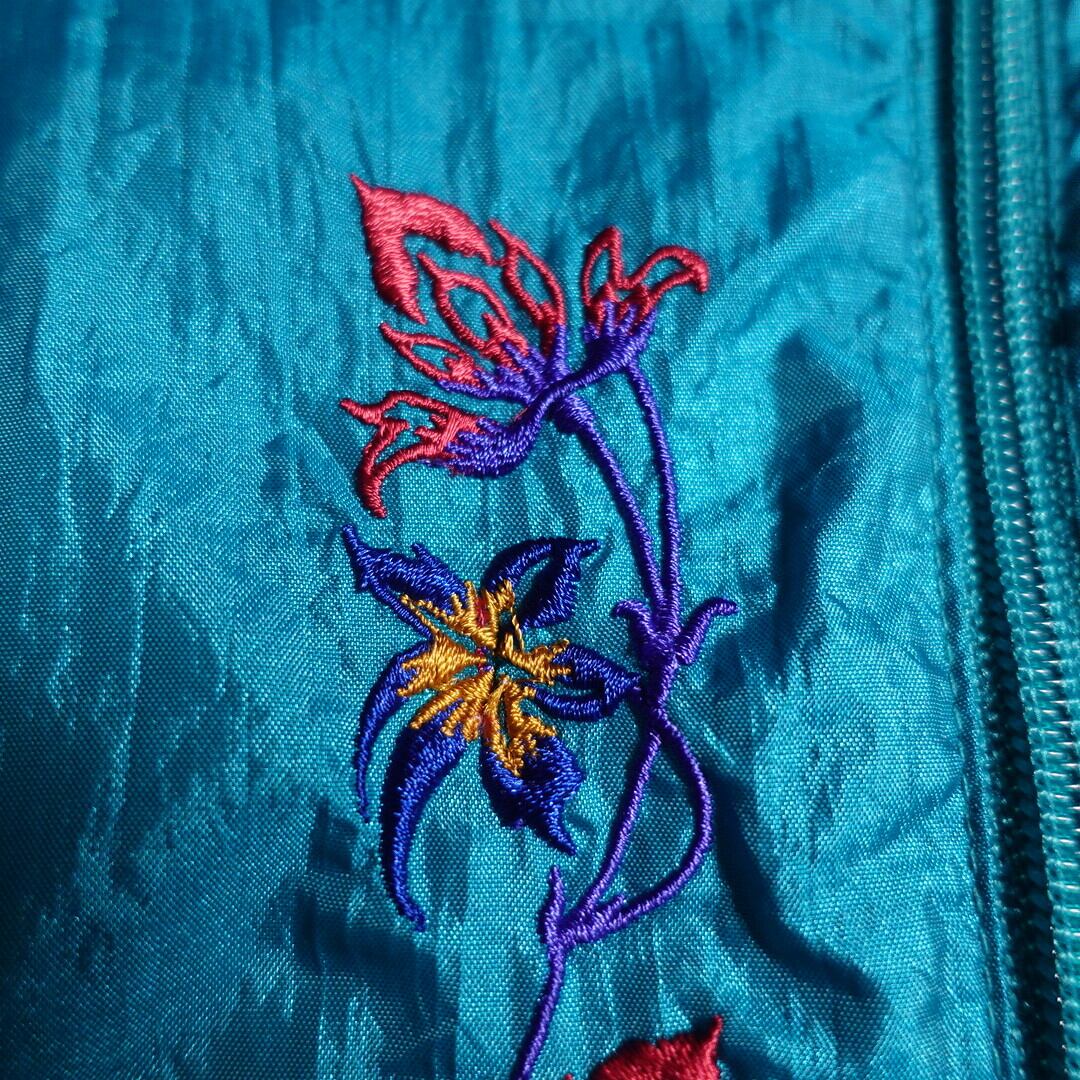 マルチカラーの花モチーフ刺繍デザインナイロンジャケットが入荷です。