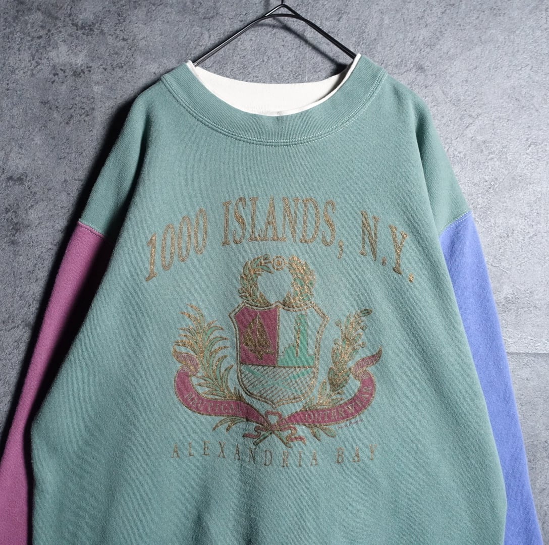 ボディーと袖がそれぞれ色の違っスウェットでは珍しい切替デザイン。
