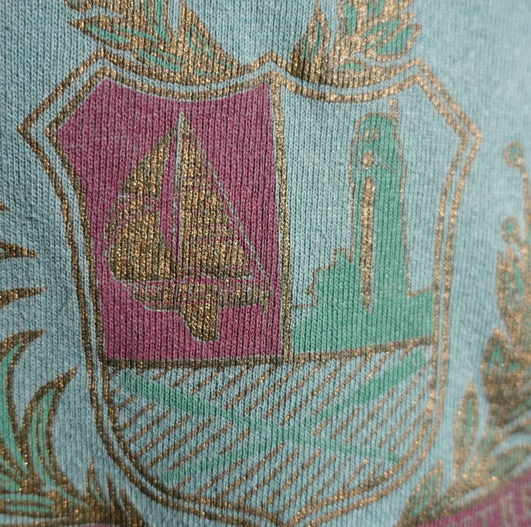 フロントにエンブレム調のプリントを大きくあしらったデザイン。