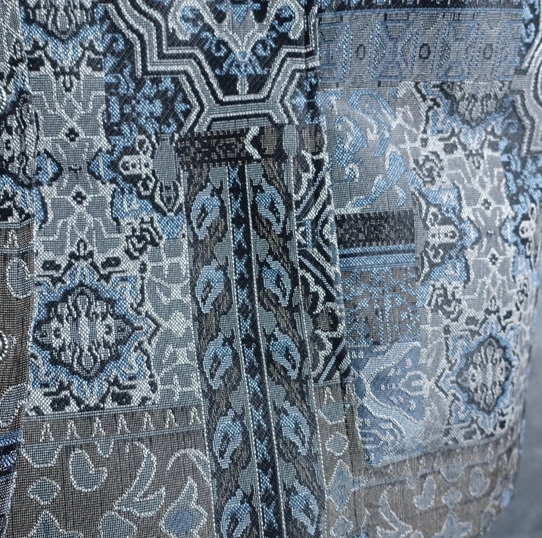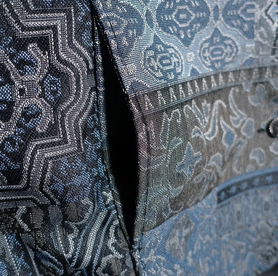 素材はポリエステル100%ジャガード生地で特有の凹凸感と光沢感があり独特な雰囲気があります。