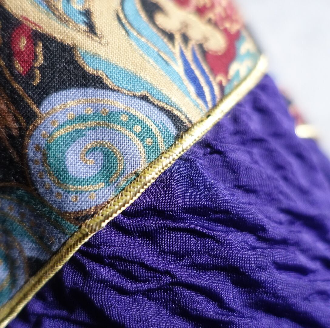 ブラックをベースに和テイストな柄とパープルのプリーツ生地で切り替えたスペシャルなデザイン。