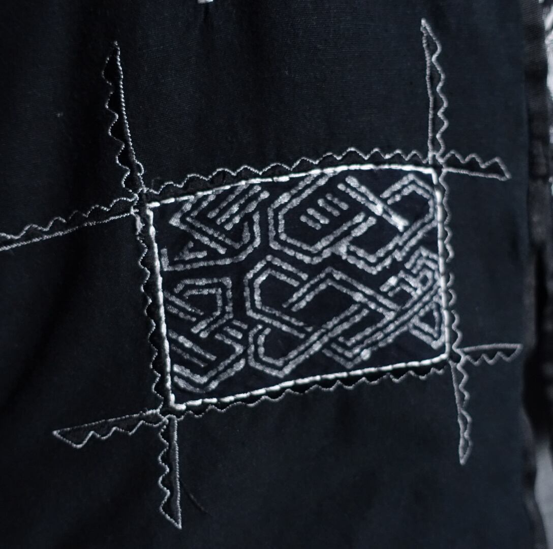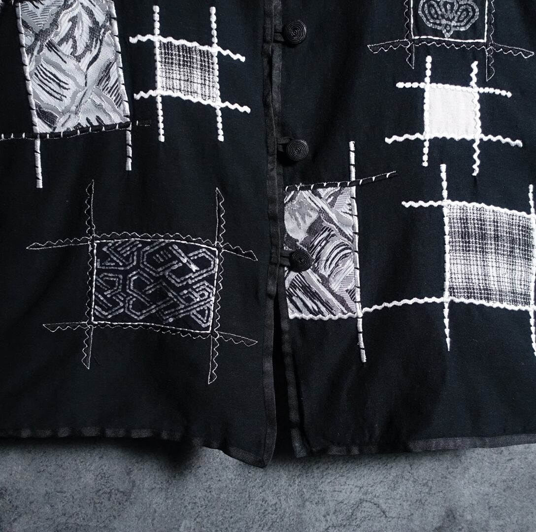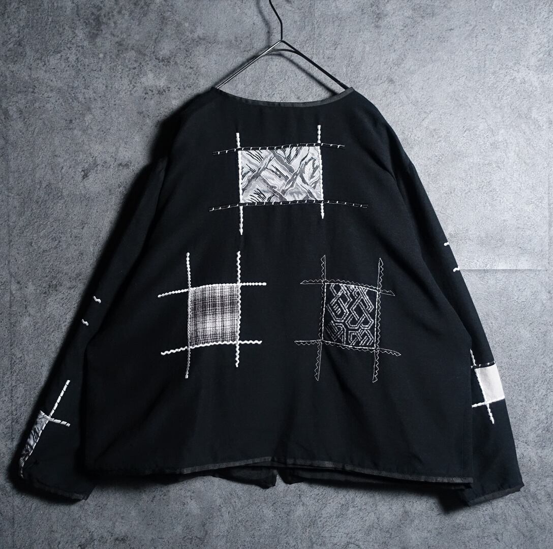 ダマスク、ジャガード織の抽象的な柄、幾何学模様のパッチを施したデザイン。