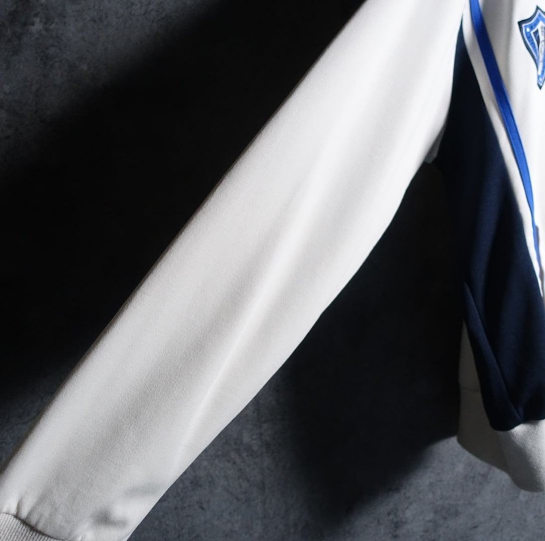 ホワイトをベースに両胸にワッペンとブランドロゴを刺繍で施したデザイン。