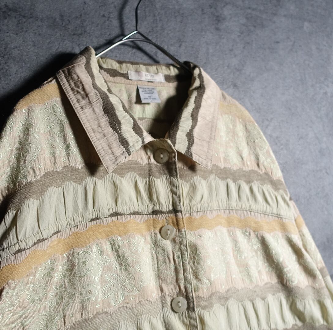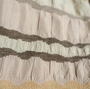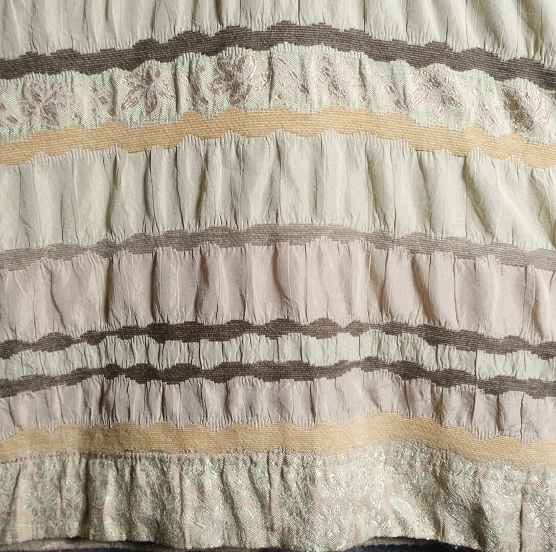 花モチーフをあしらった生地やシワ加工の入った生地、ベロア生地をボーダー状に切り替えた凝りに凝ったスペシャルなデザイン。