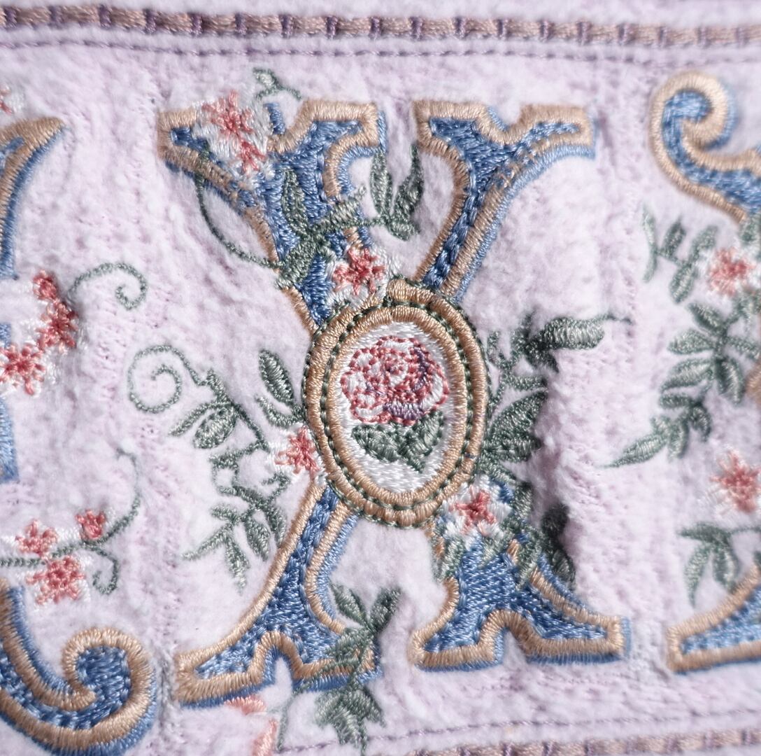 アルファベットにまでボタニカルのデザインが施されていたり、Xの中央に薔薇のモチーフが施されているのも洒落ていて◎