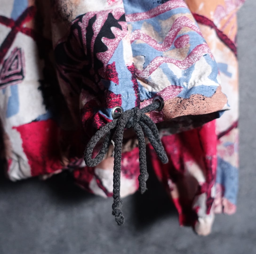 素材は恐らくナイロン、コットンで光沢感のあるサラッとした生地感で裏地がなくシャツのような感覚で着ていただけます。