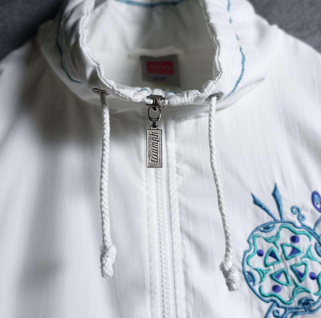 EURO White x Light Green Embroidered Asymmetrical Design Nylon Jacket