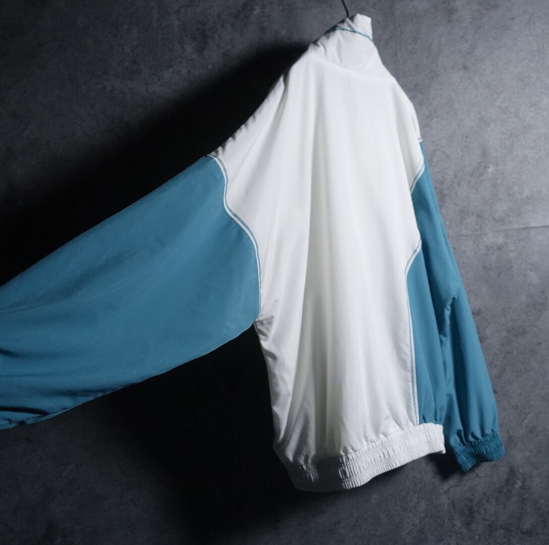 EURO White x Light Green Asymmetrical Design Nylon Jacket