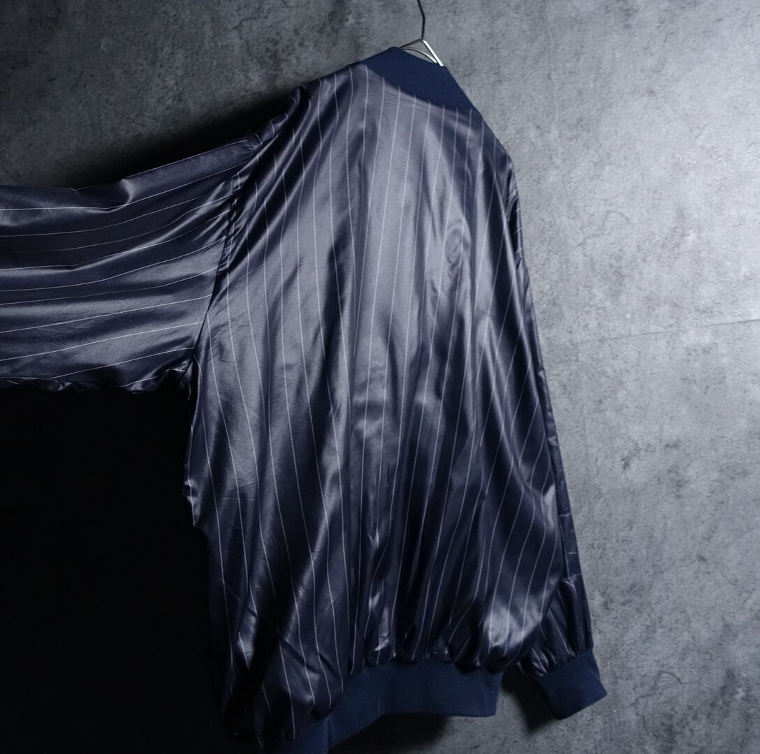 ネイビーをベースにホワイトのストライプを全面にあしらった上品なデザイン。