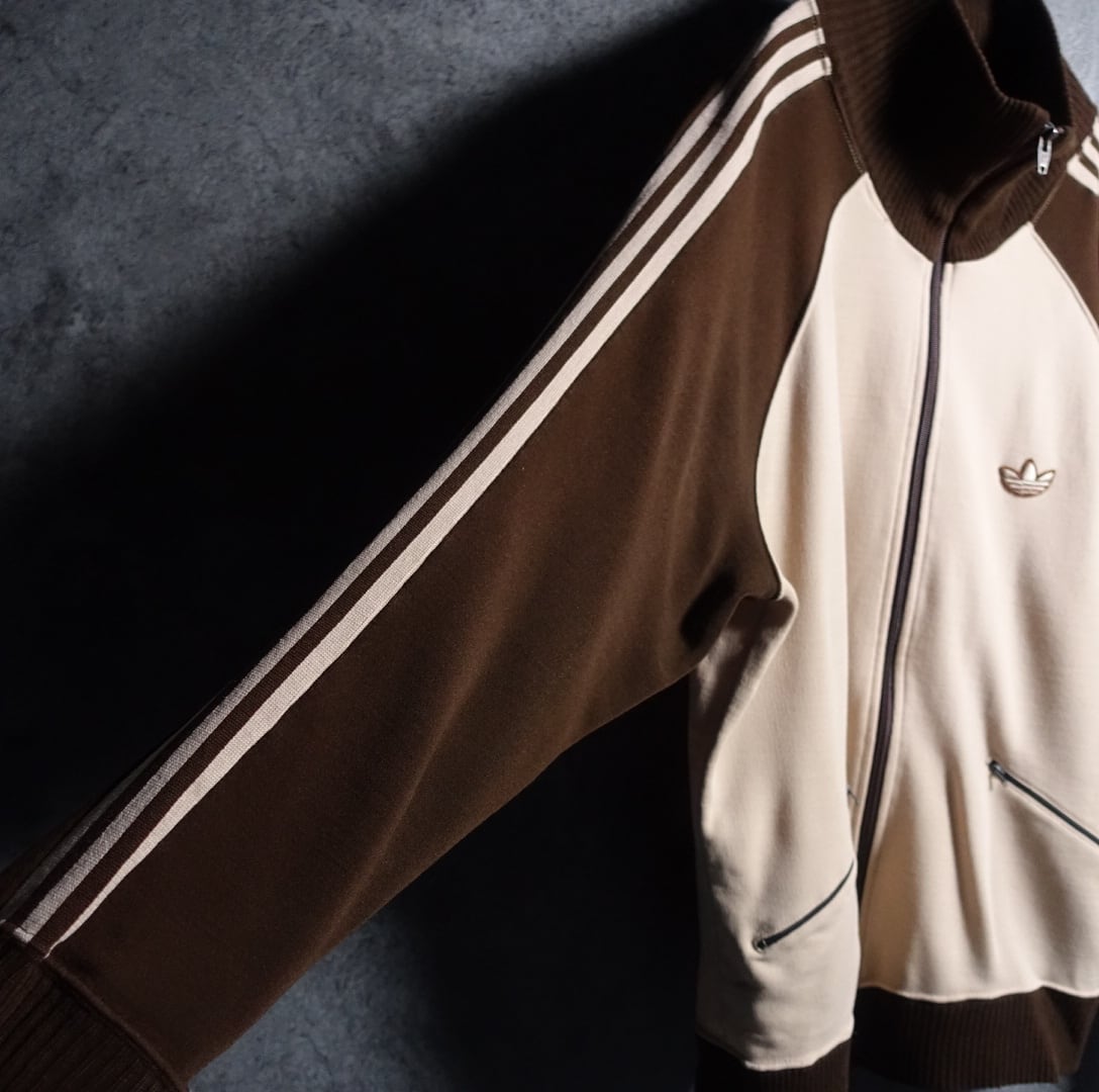 トラックジャケットの中でも特に人気が高く見つかりづらいブラウン×ベージュのツートーンカラー。